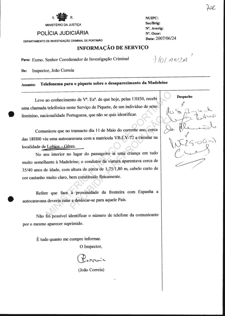 She said that on 11th May 2007, at about 18:00 she saw a motor