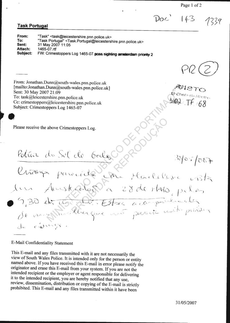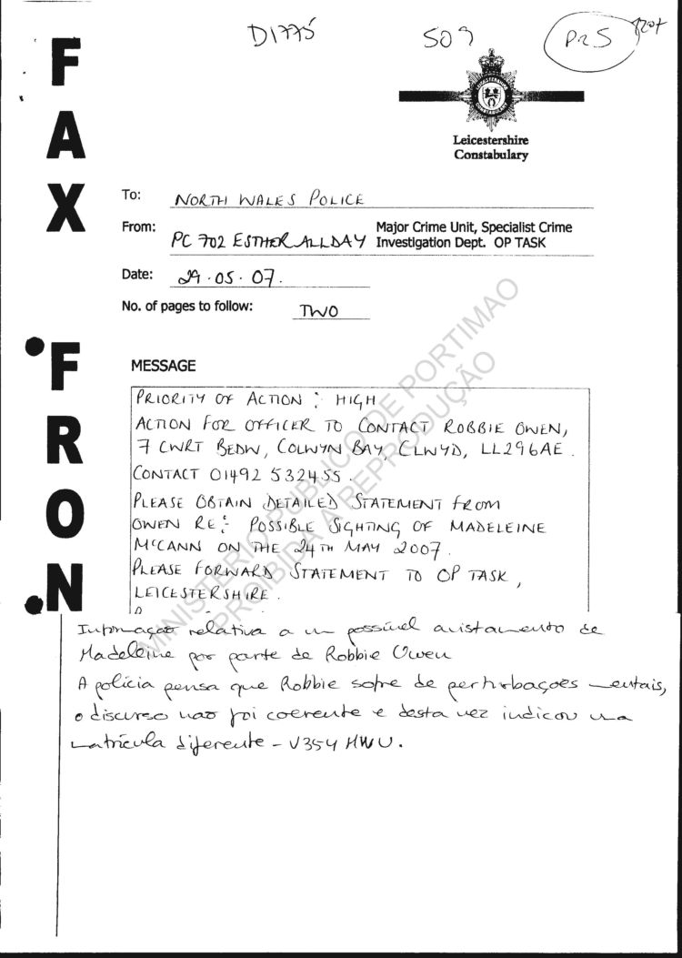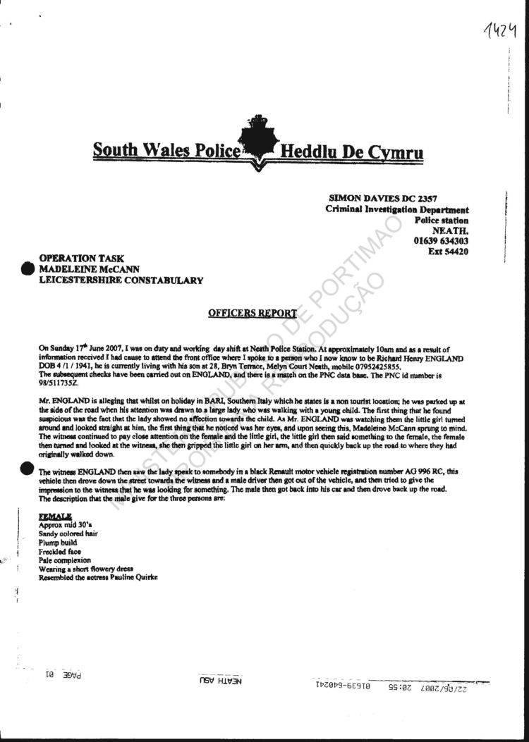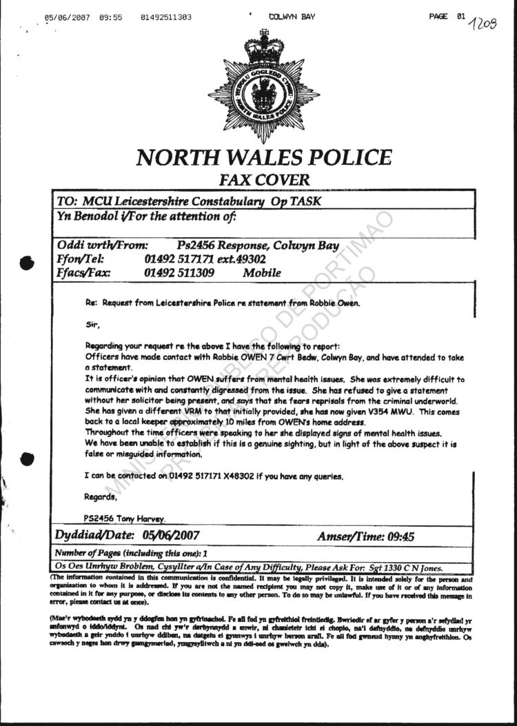 Wales Police re sighting |