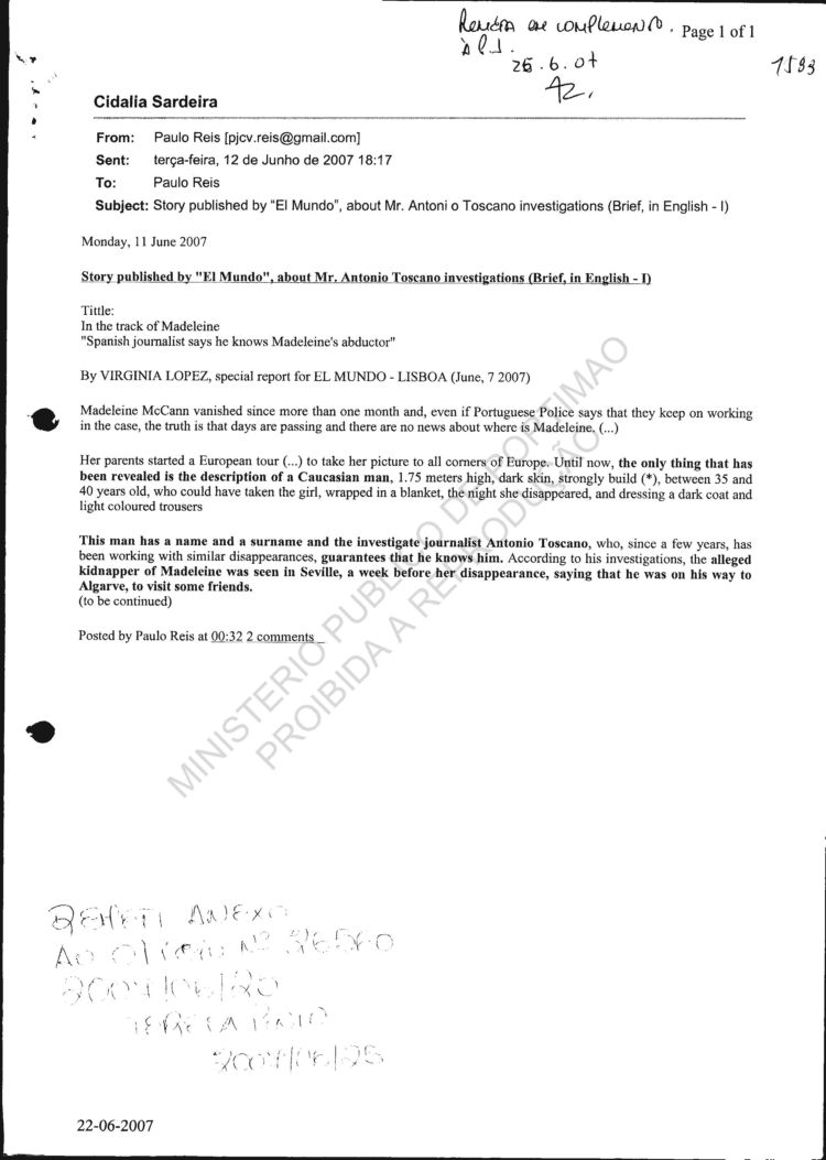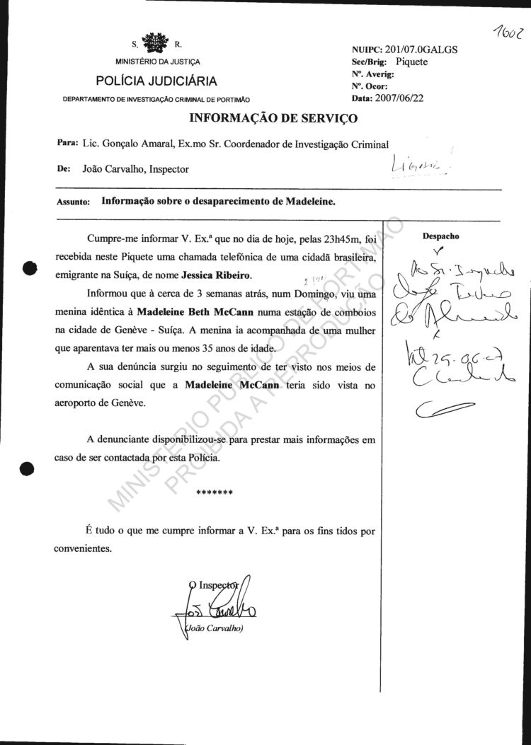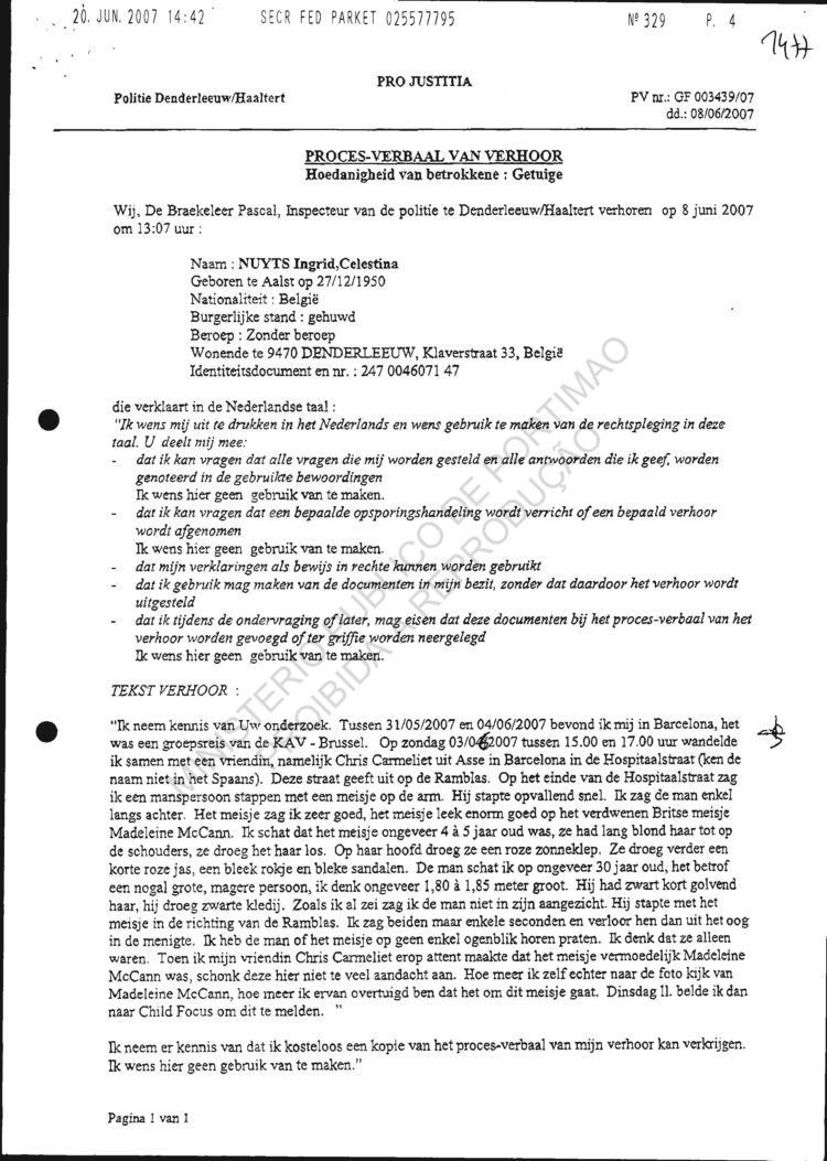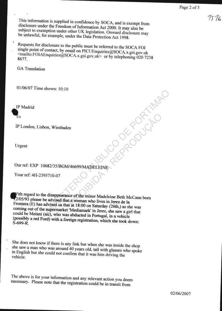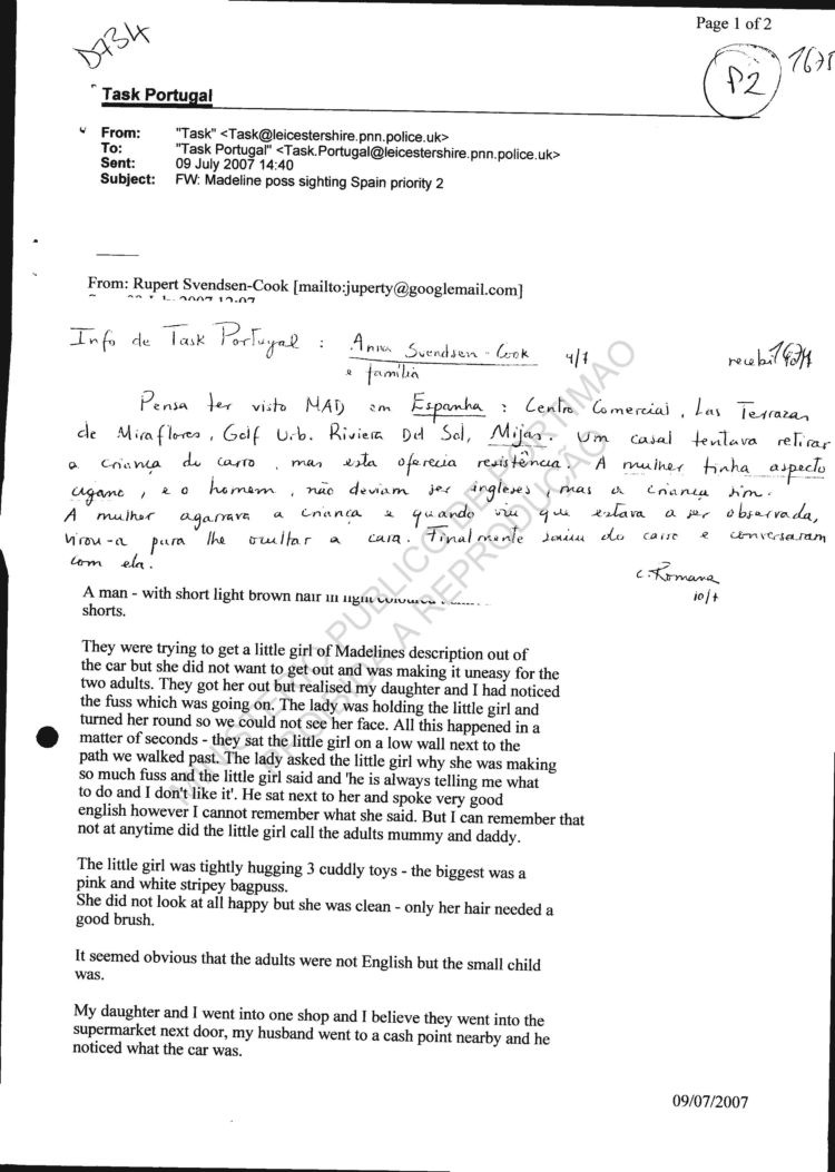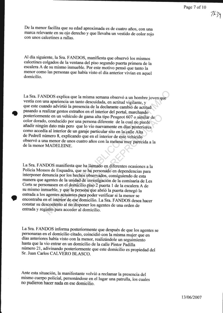 statement re sighting in Huelva |