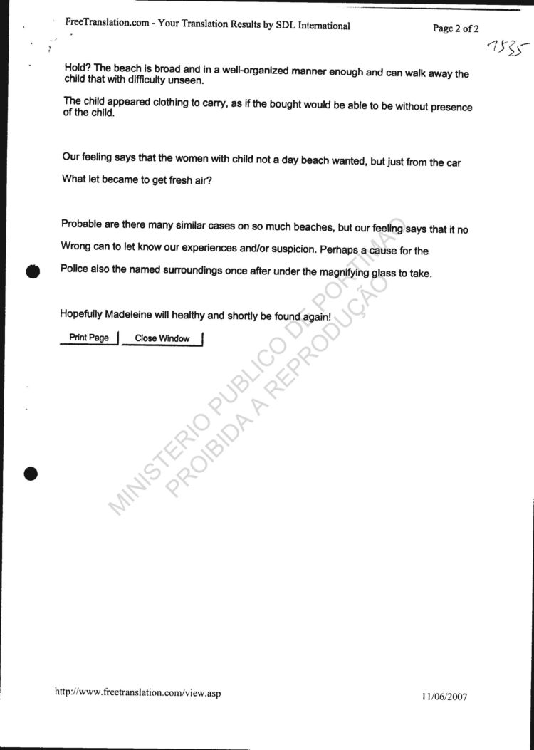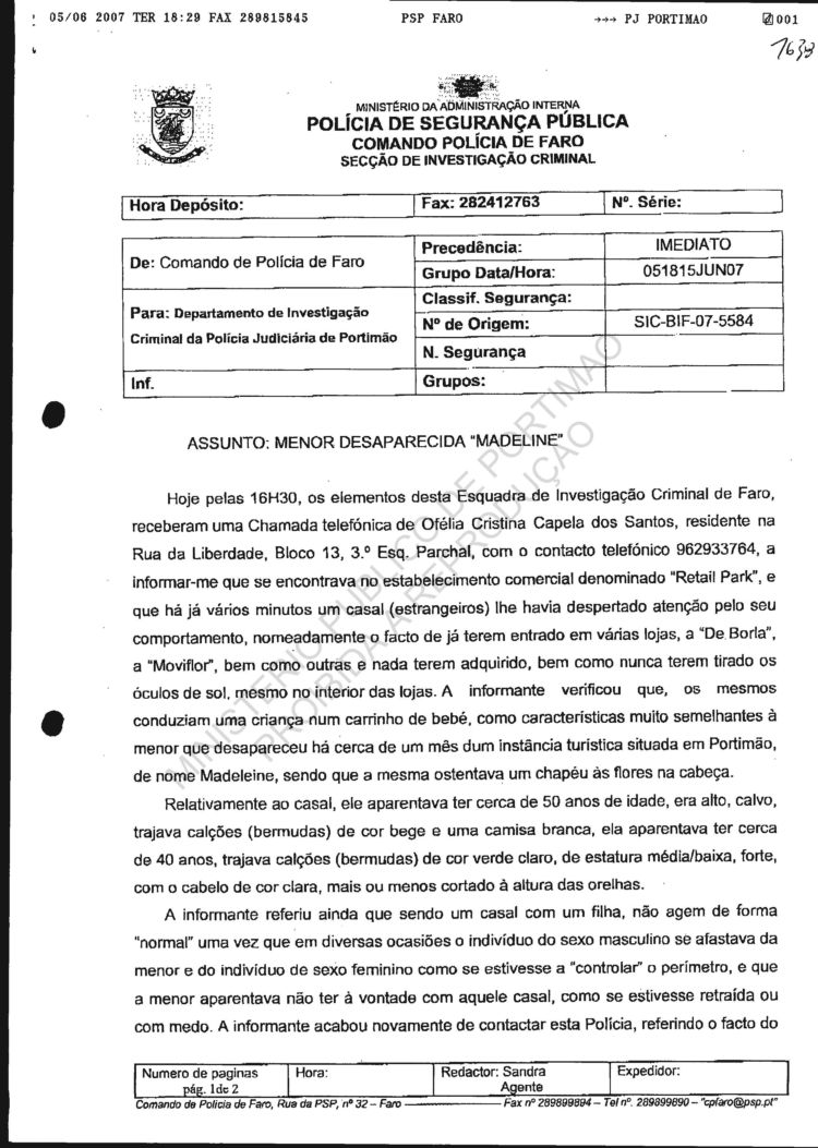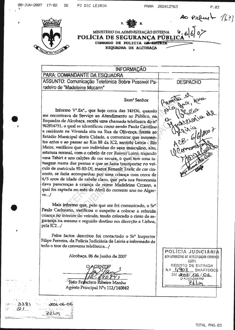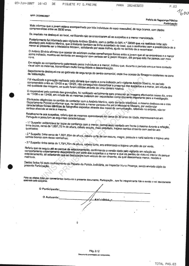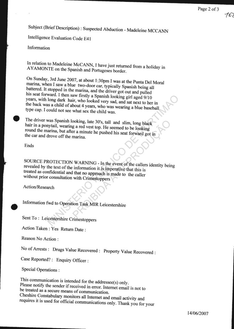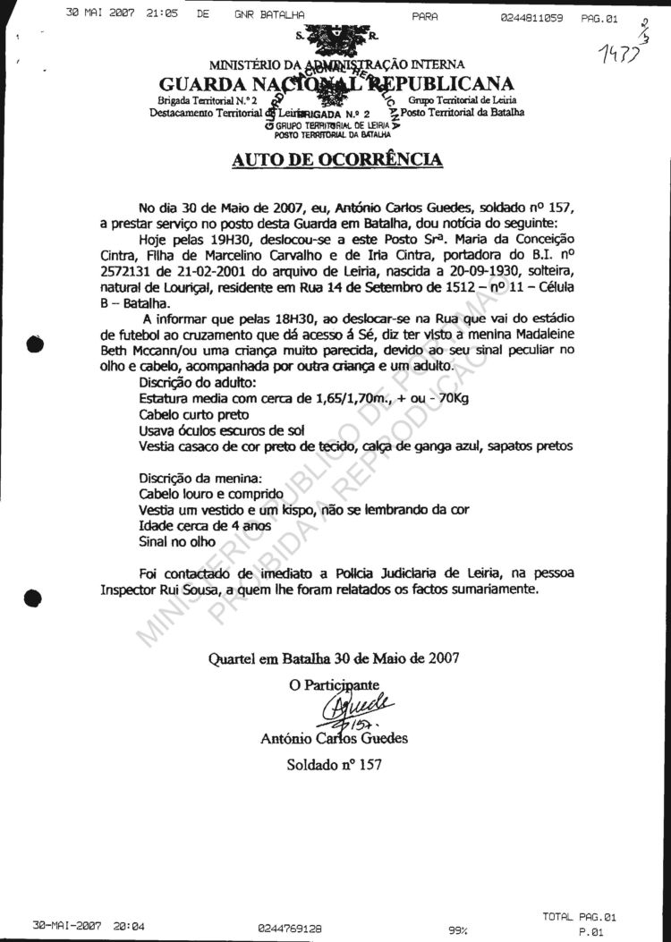 statement re sighting in Huelva |