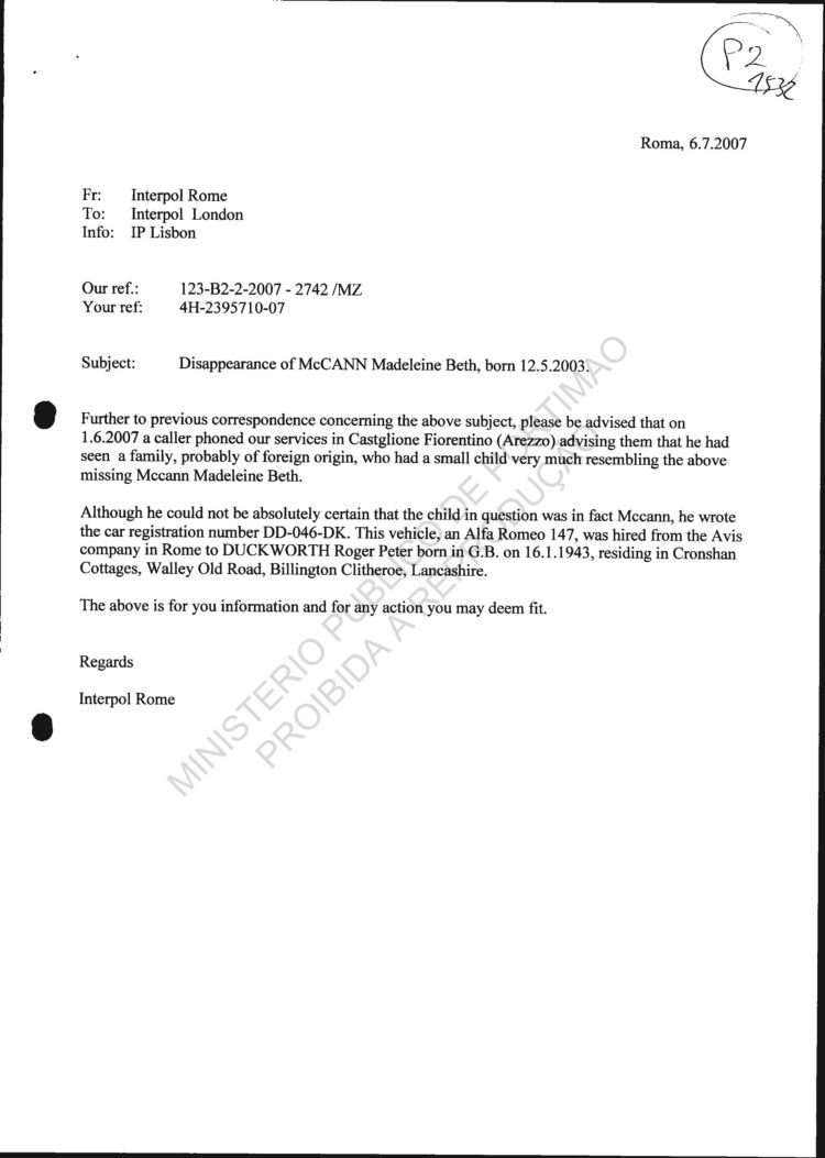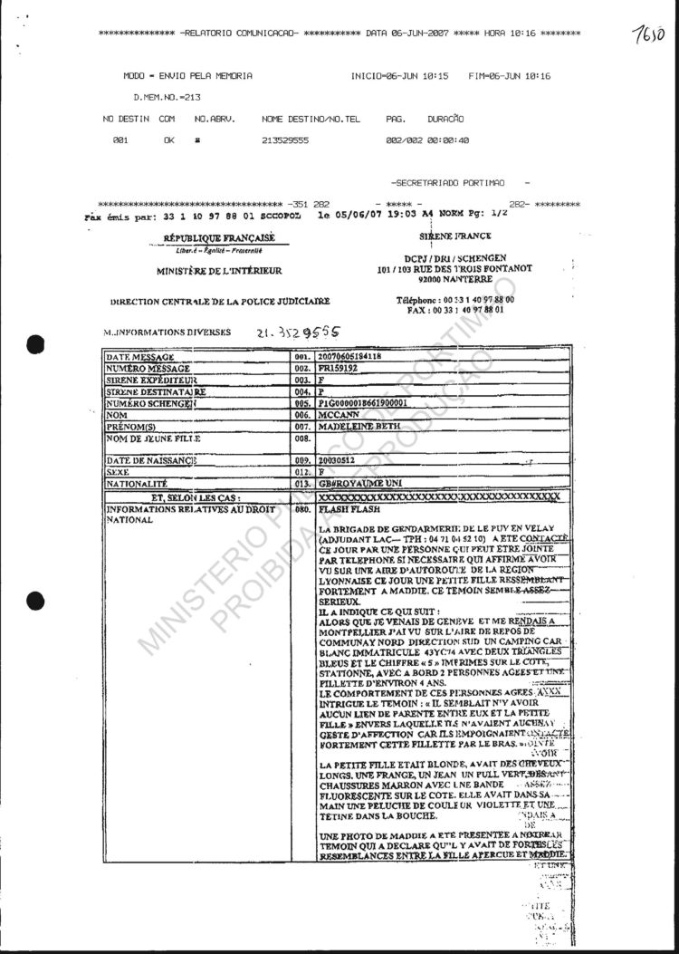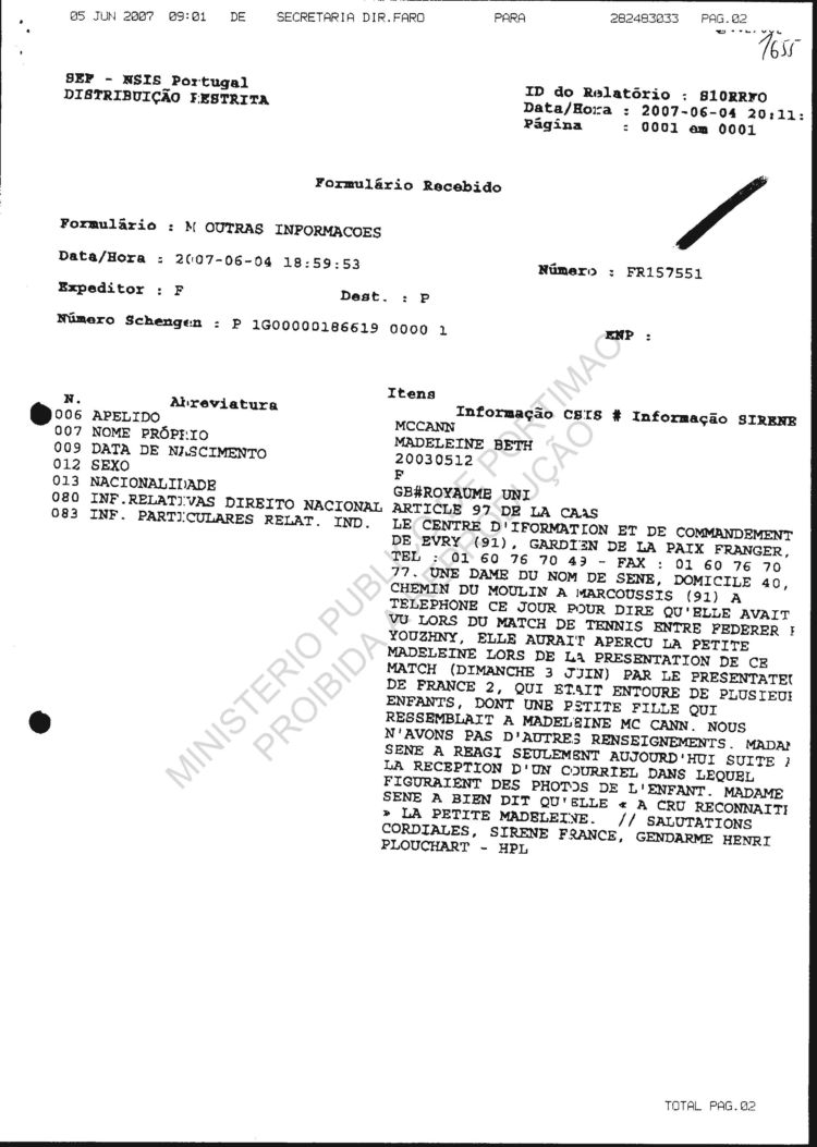 received from SIRENE |