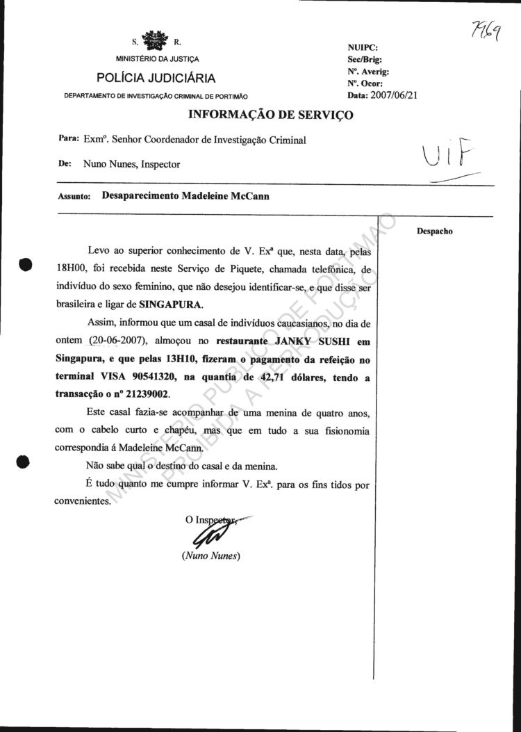 statement re sighting in