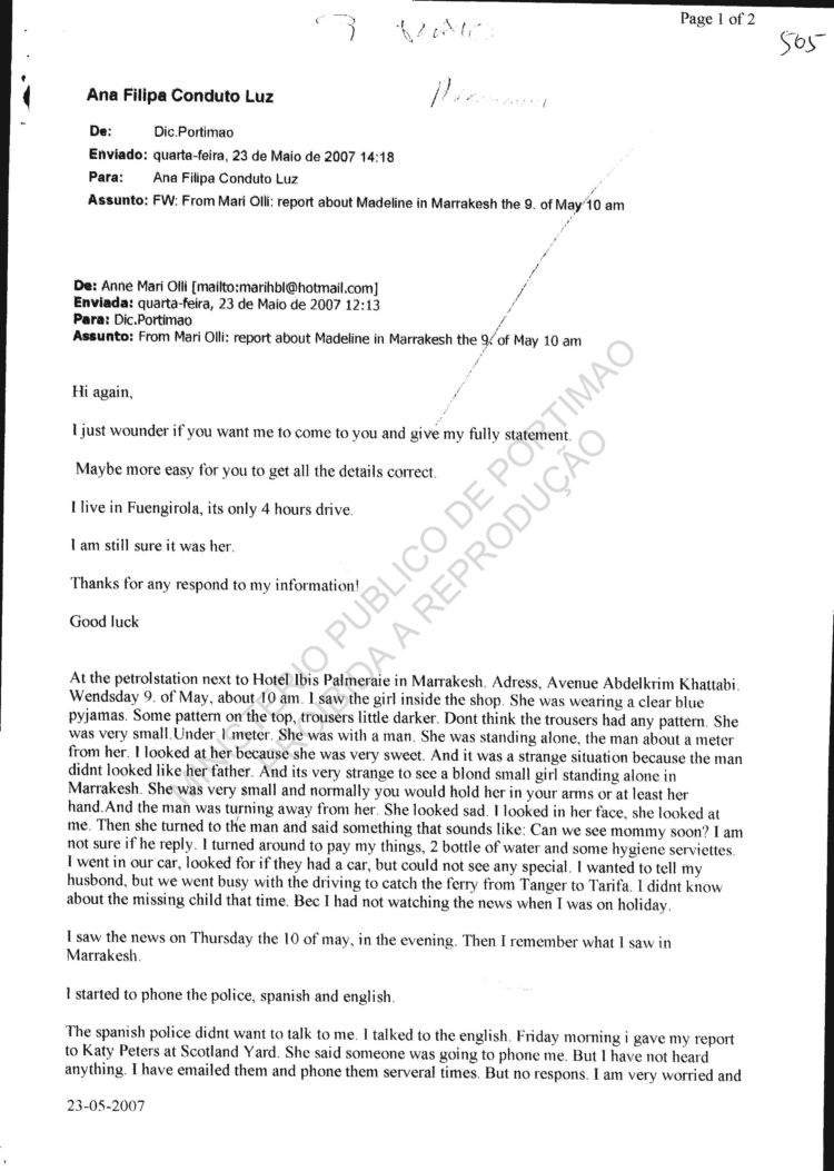 MARI OLLI-Was on holiday at the time. Is now back home in Spain.