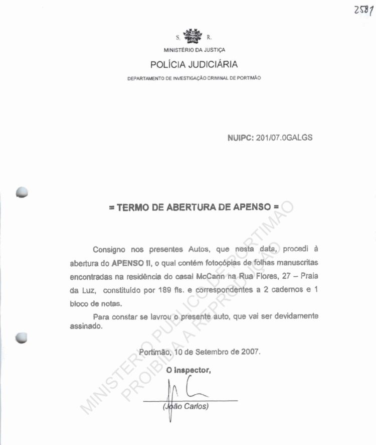 I notify the case that at this date I have opened Apenso II