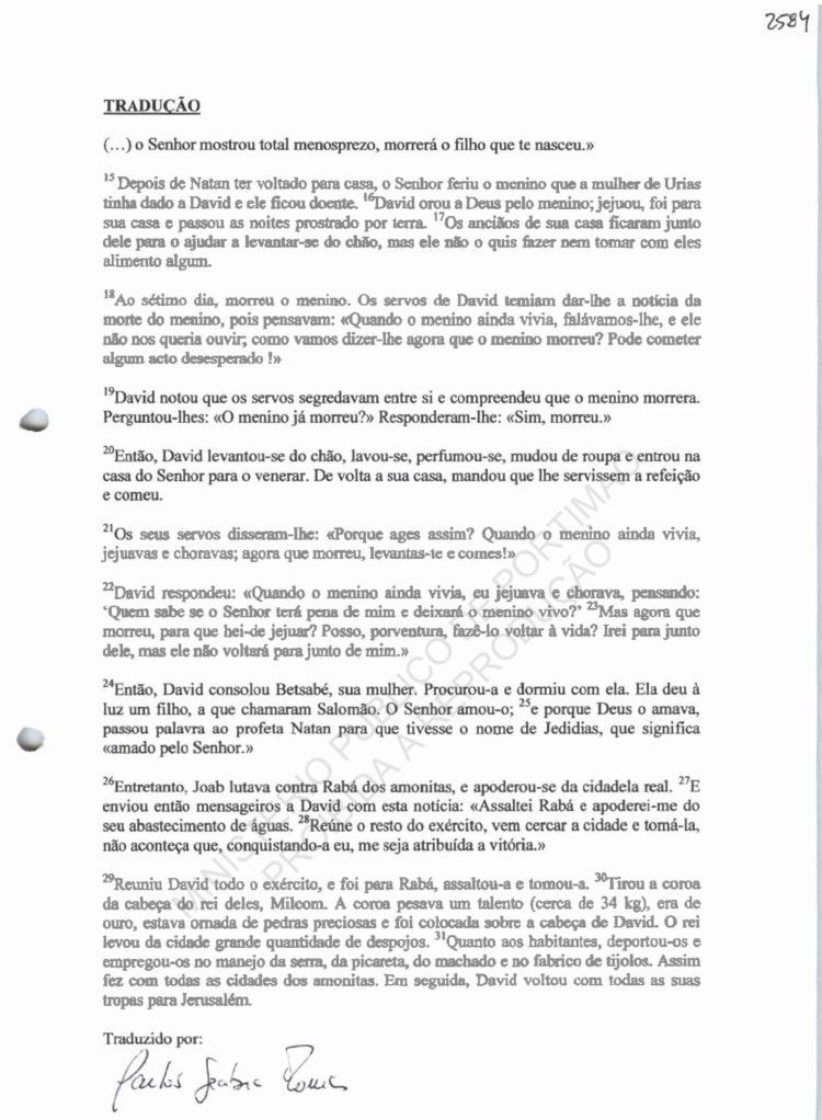 from English into Portuguese of the documents with page numbers
