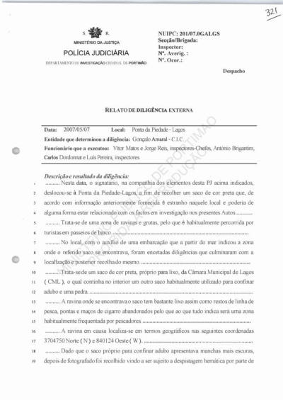 da Piedade, in Lagos, he saw a dark coloured bag amongst the