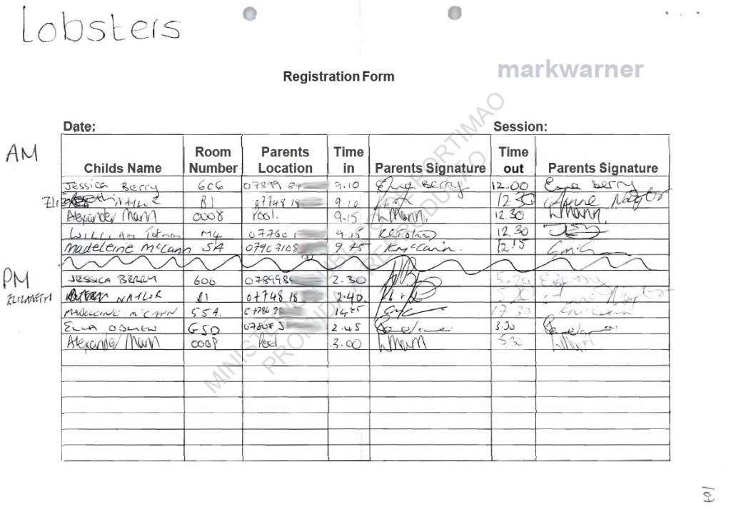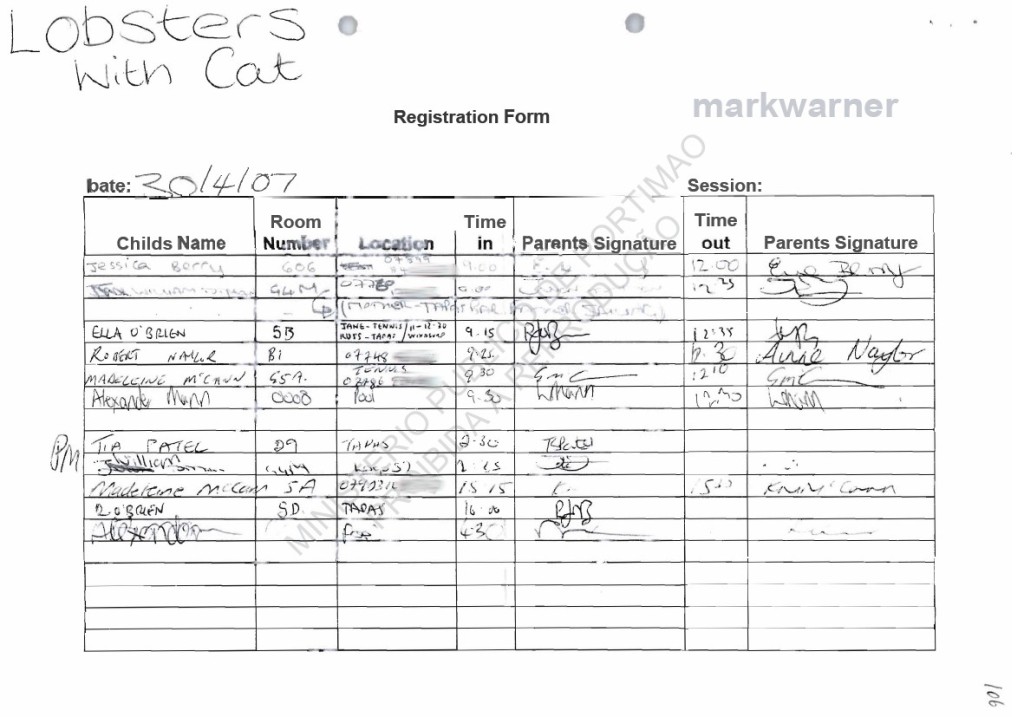 ROUTINE she handed Madeleine over at 17.30. She looked