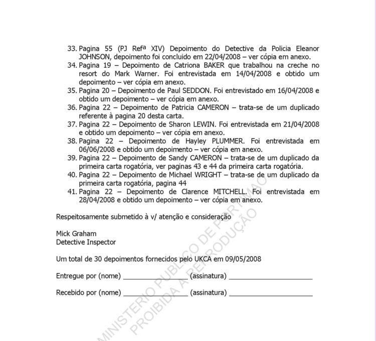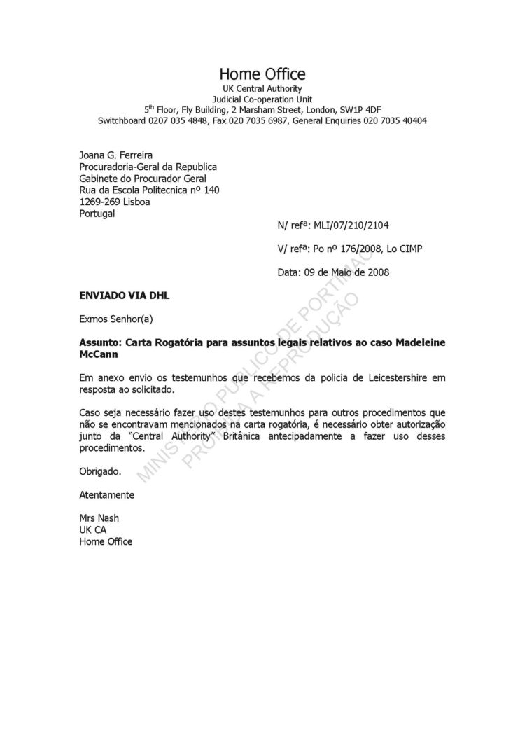 This information belongs to the Ministério Público in Portimão, Portugal.It was released to the public on 4 August 2008 in accordance with Portuguese Law