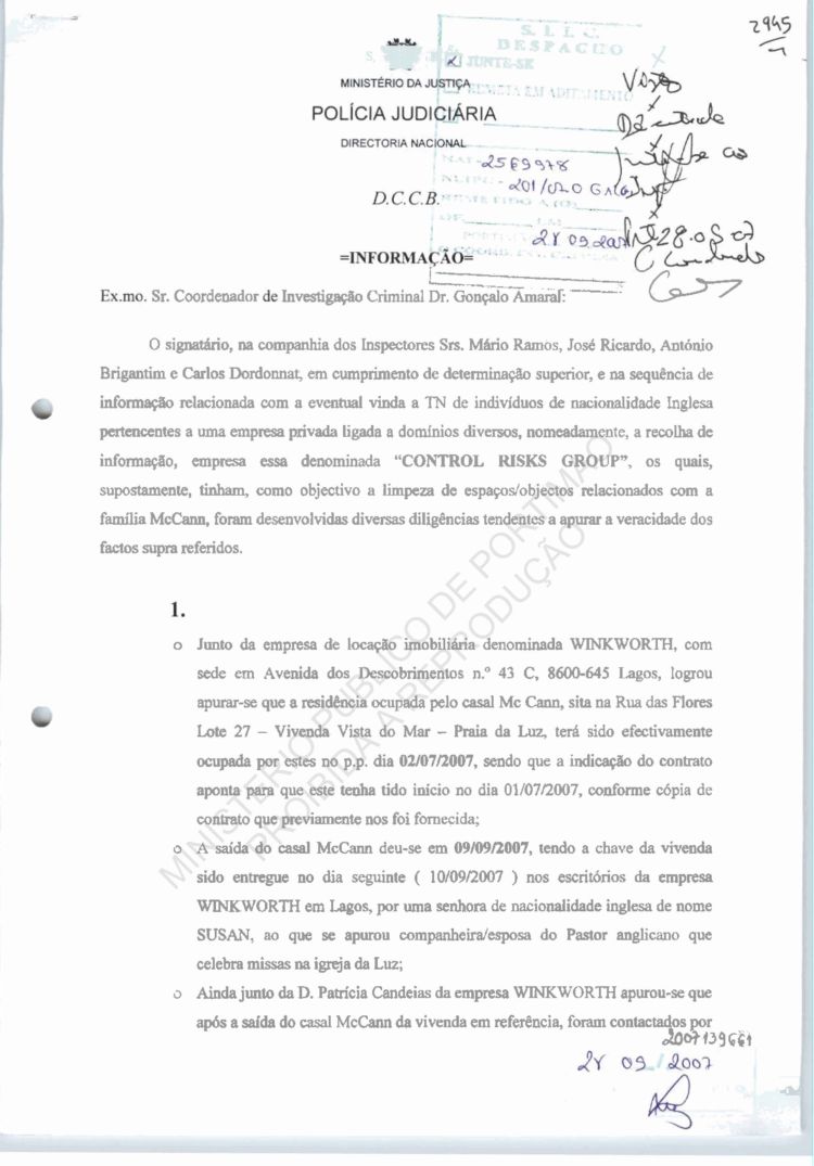 To: The Coordinator of the Criminal Investigation, Dr Amaral