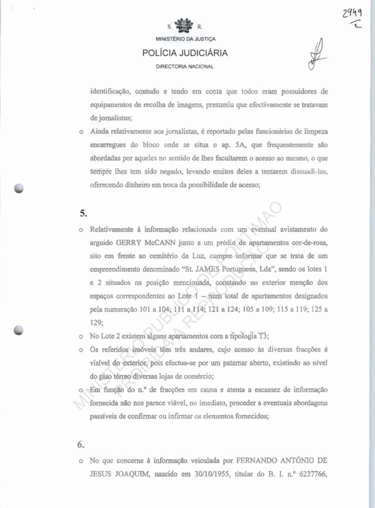 5. With regard to the possible sighting of arguido Gerry McCann