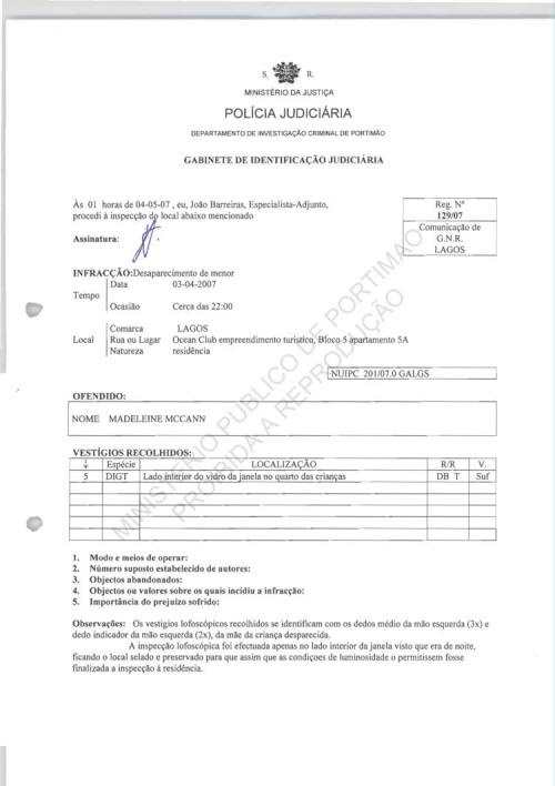 1519 to 1524 Lofoscopic Investigation (fingerprints collected) |