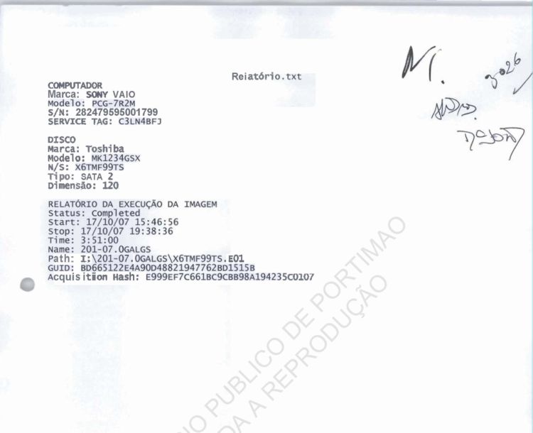 model Vaio series number 2824795**+ used by one of the arguidos,