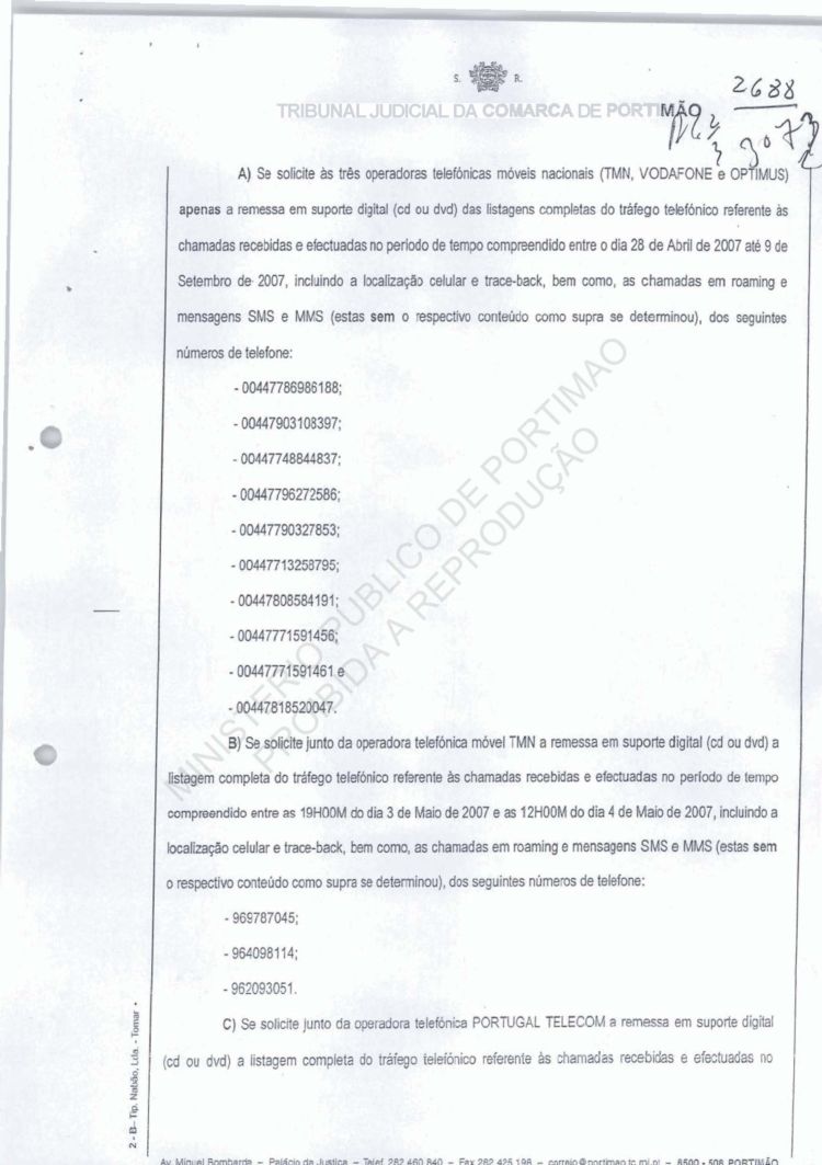 C. Its is requested that the operator PORTUGAL TELECOM supply