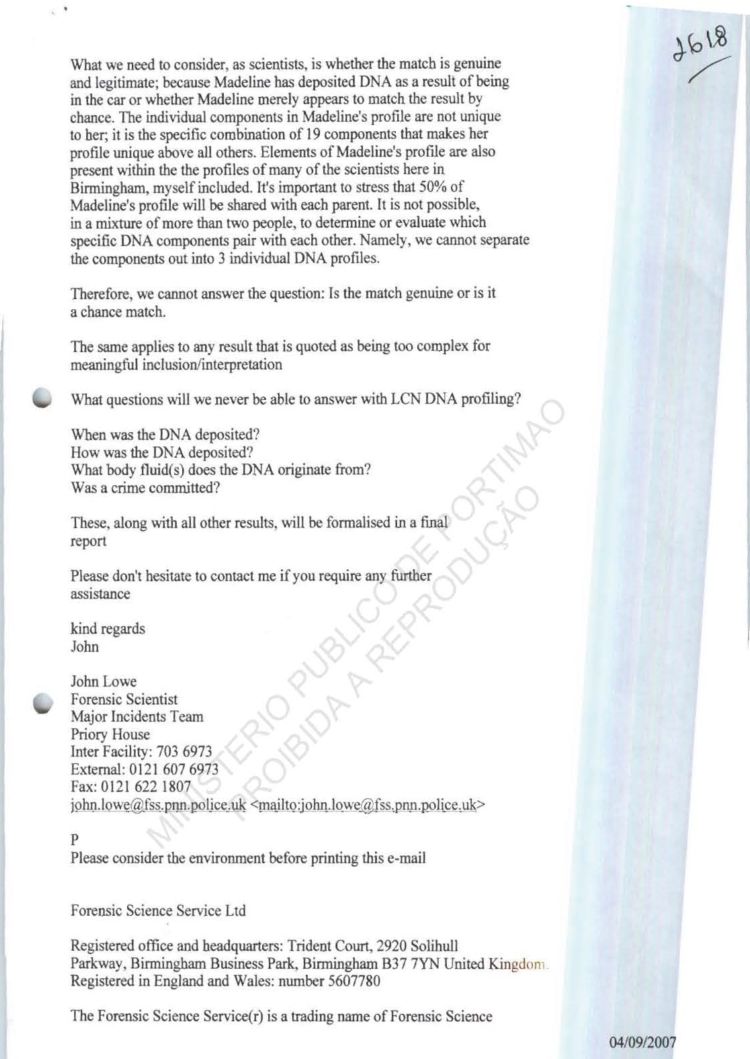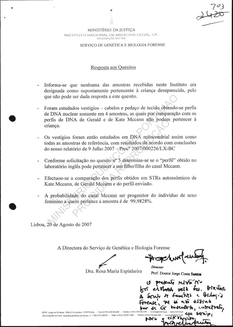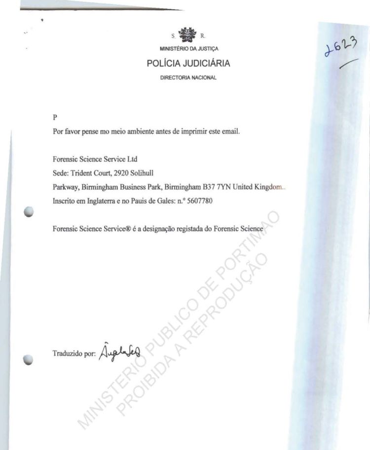 Letter to Dr. Gonçalo Amaral from the PT Genetic & Biological Forensic Service