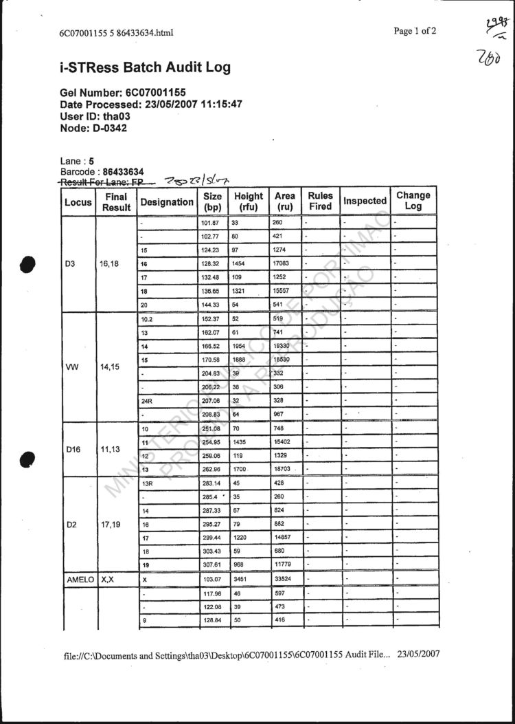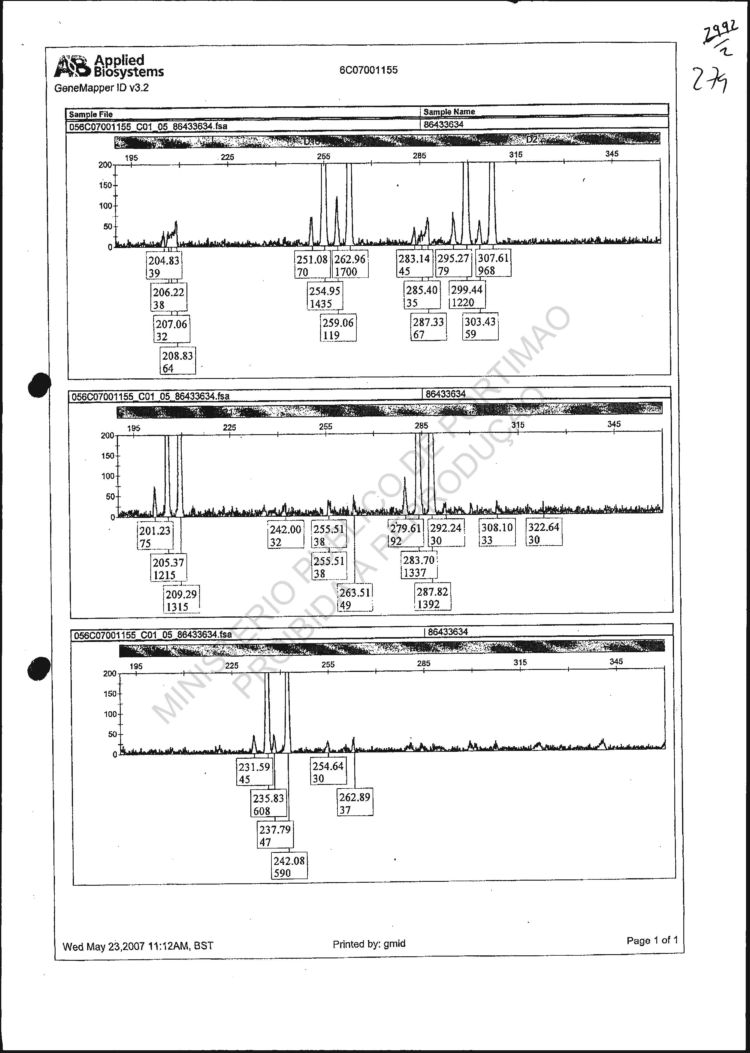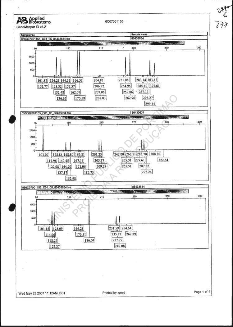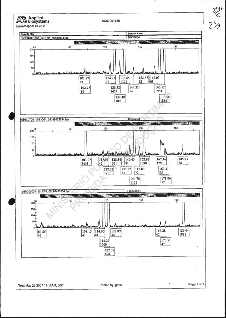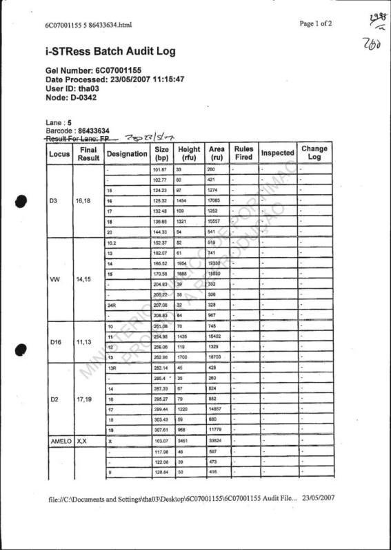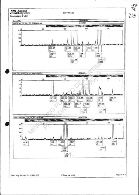 202 to 204 Report from Ministry of Justice re analysis of vestiges with haplotype info