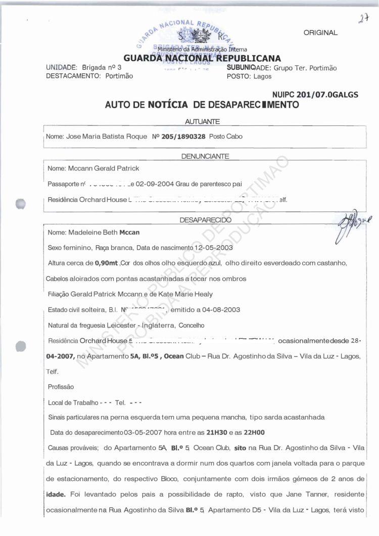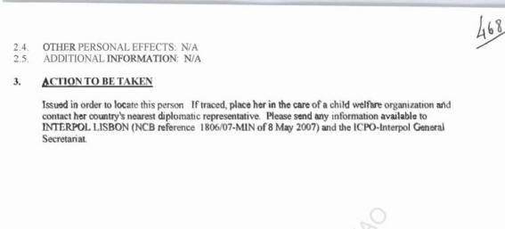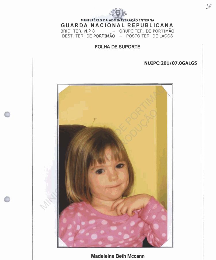 of Madeleine McCann, born on 12-05-2003, female sex, white