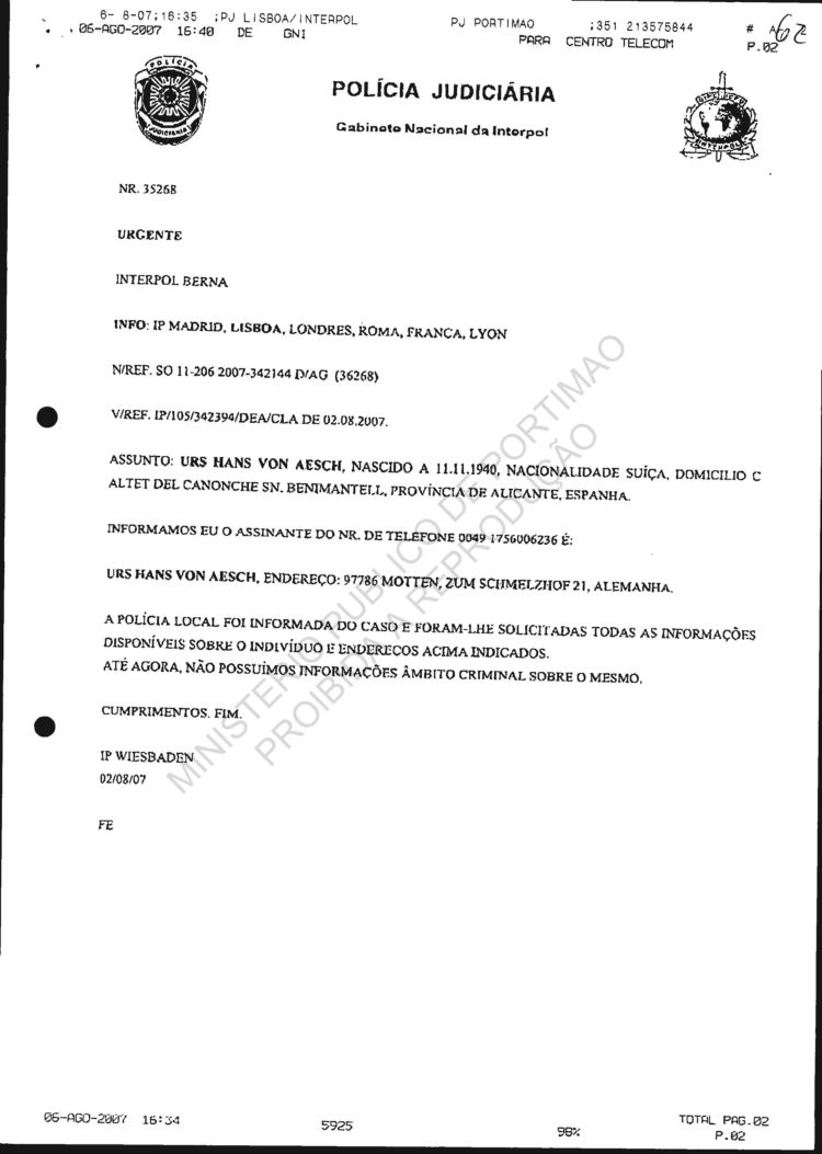 McCann investigation, of the vehicle used by Hans Von Aesch