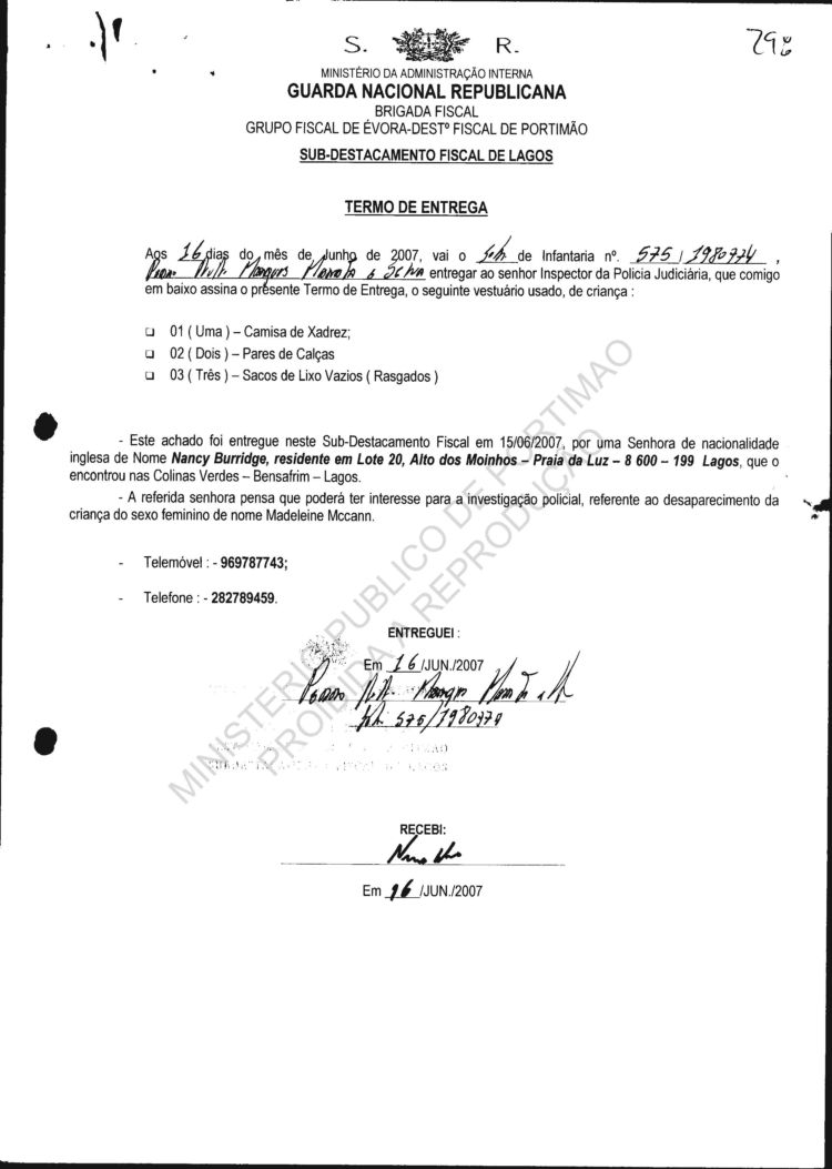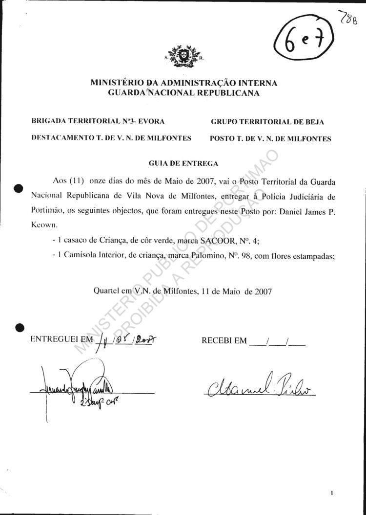 confiscated/delivered to/by