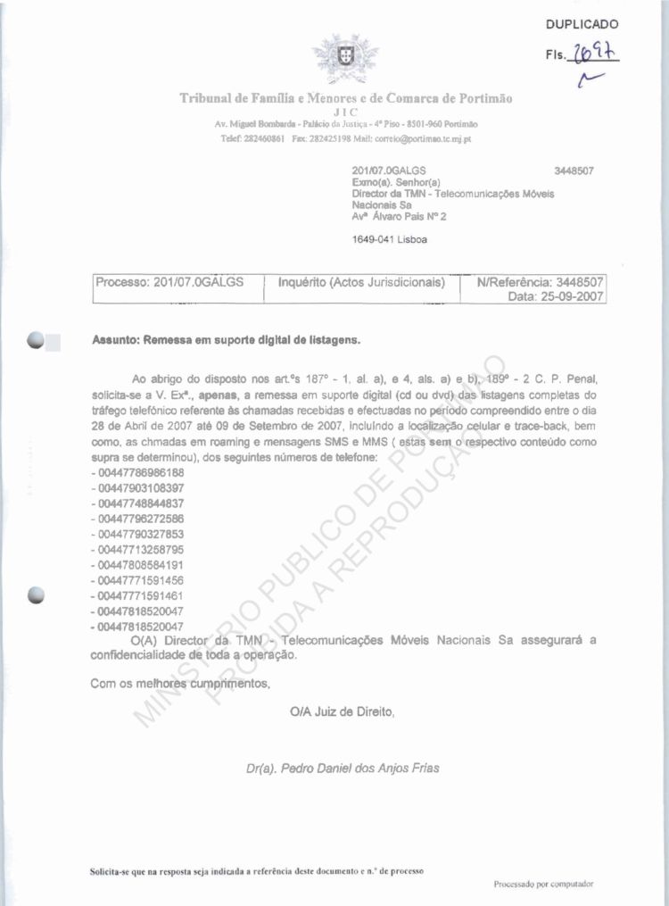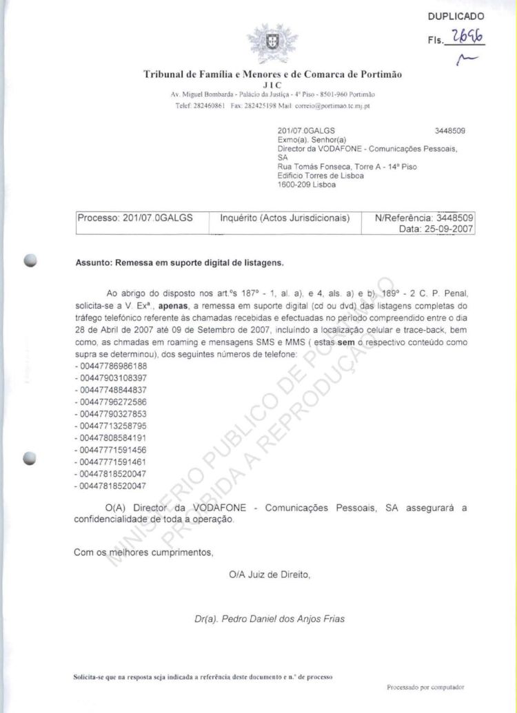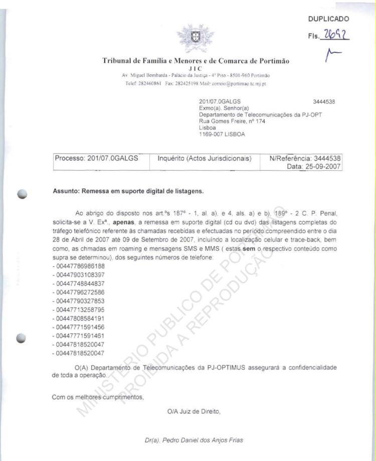 This information belongs to the Ministério Público in