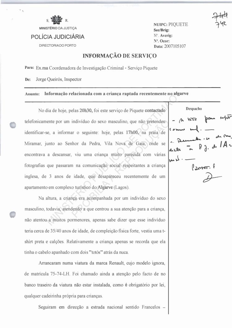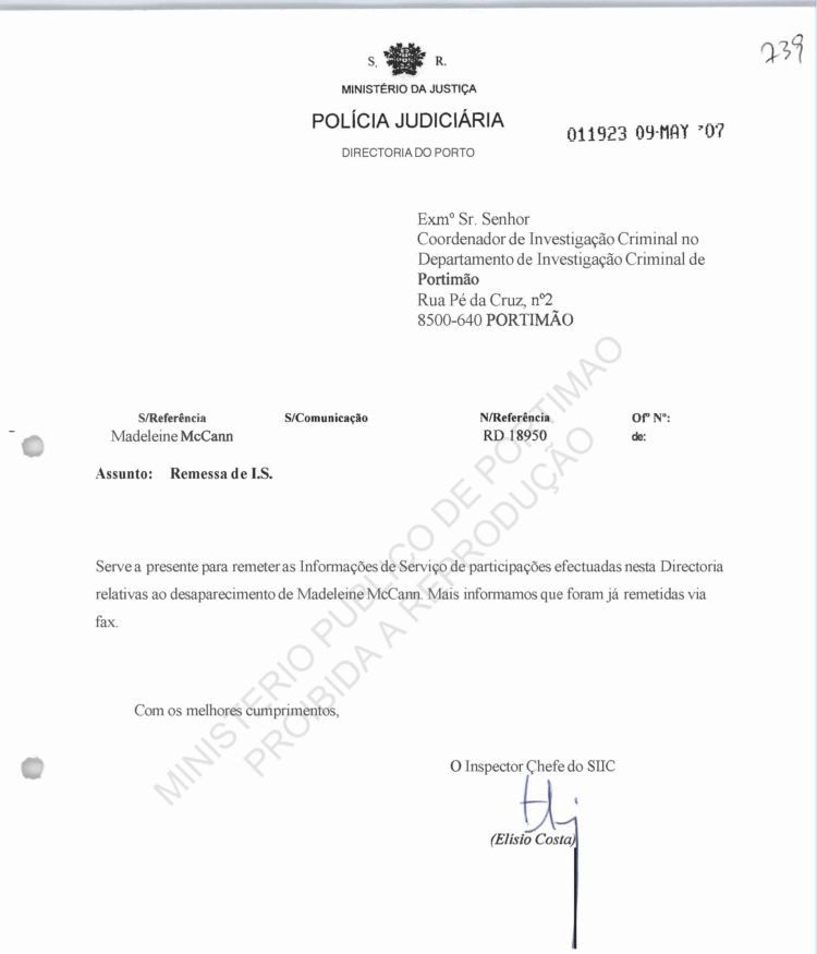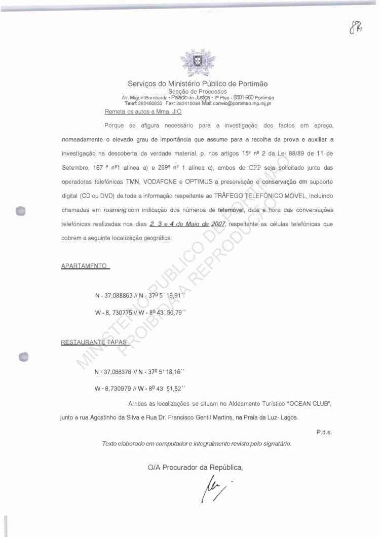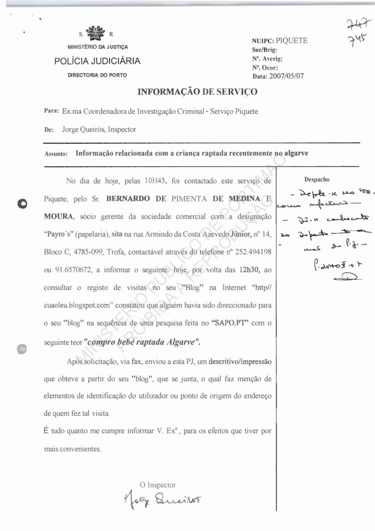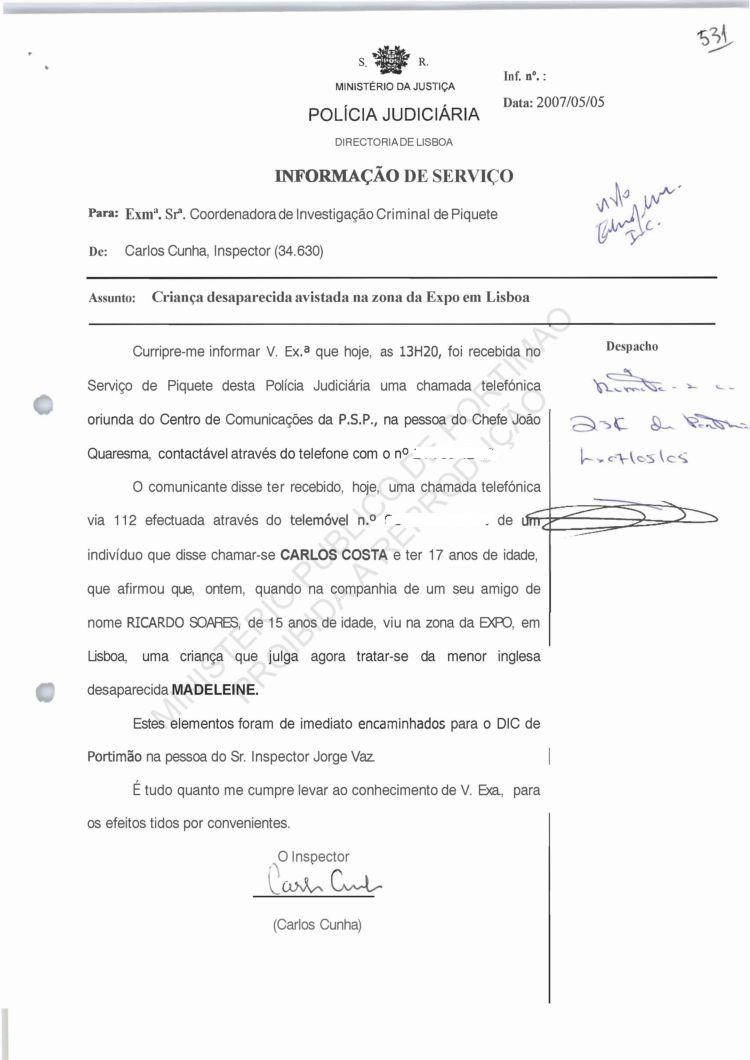 Costa, PJ Porto, regarding information on