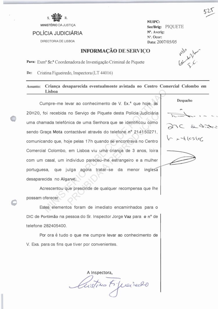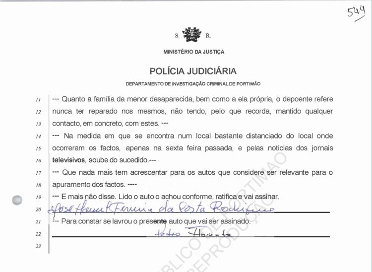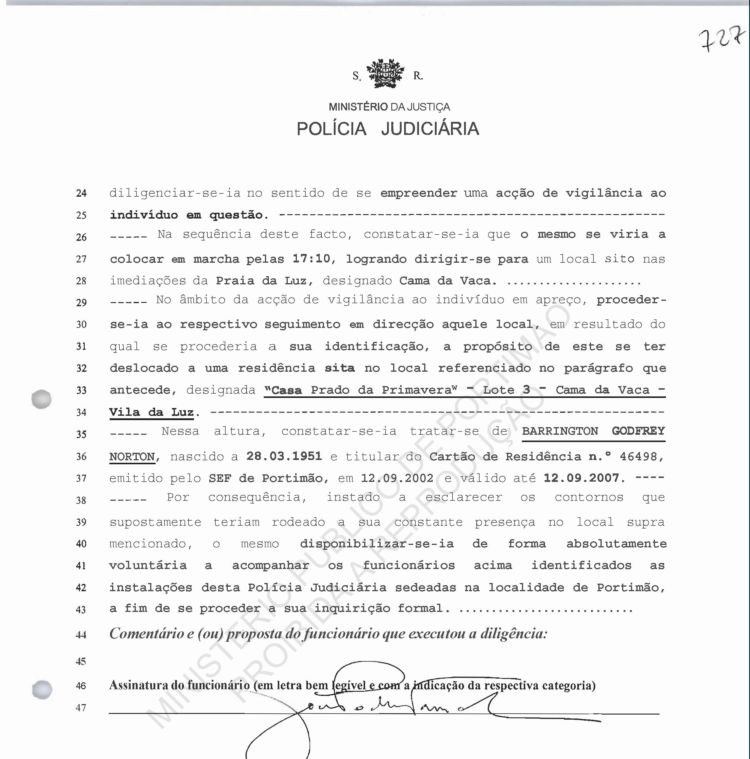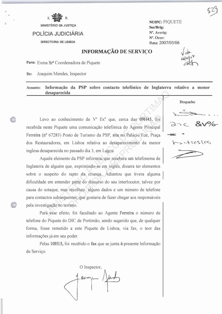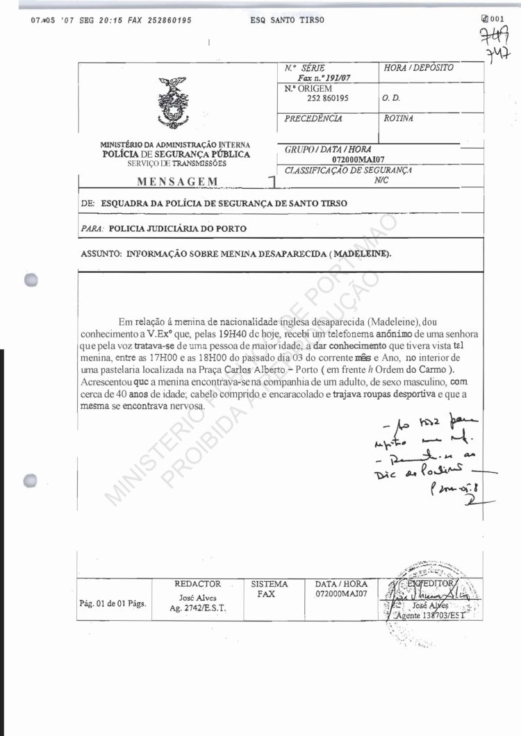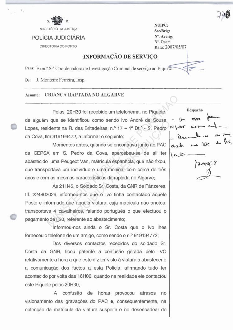 Costa, PJ Porto, regarding information on