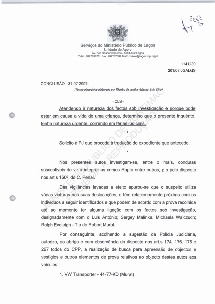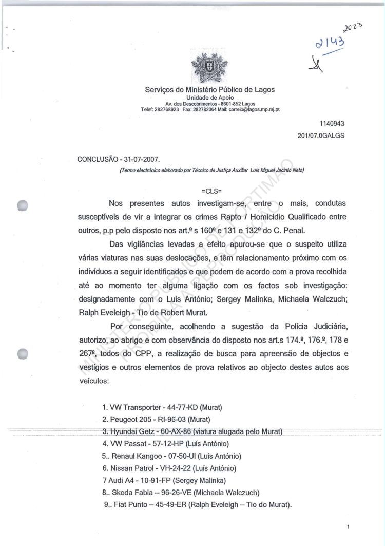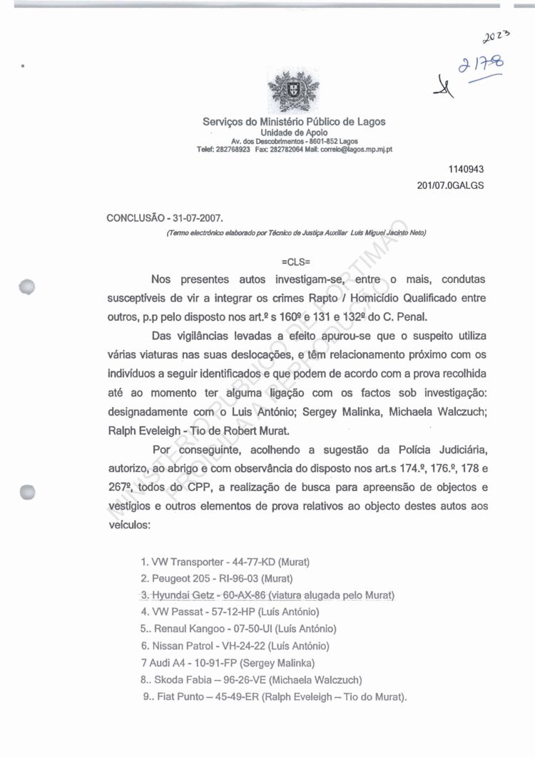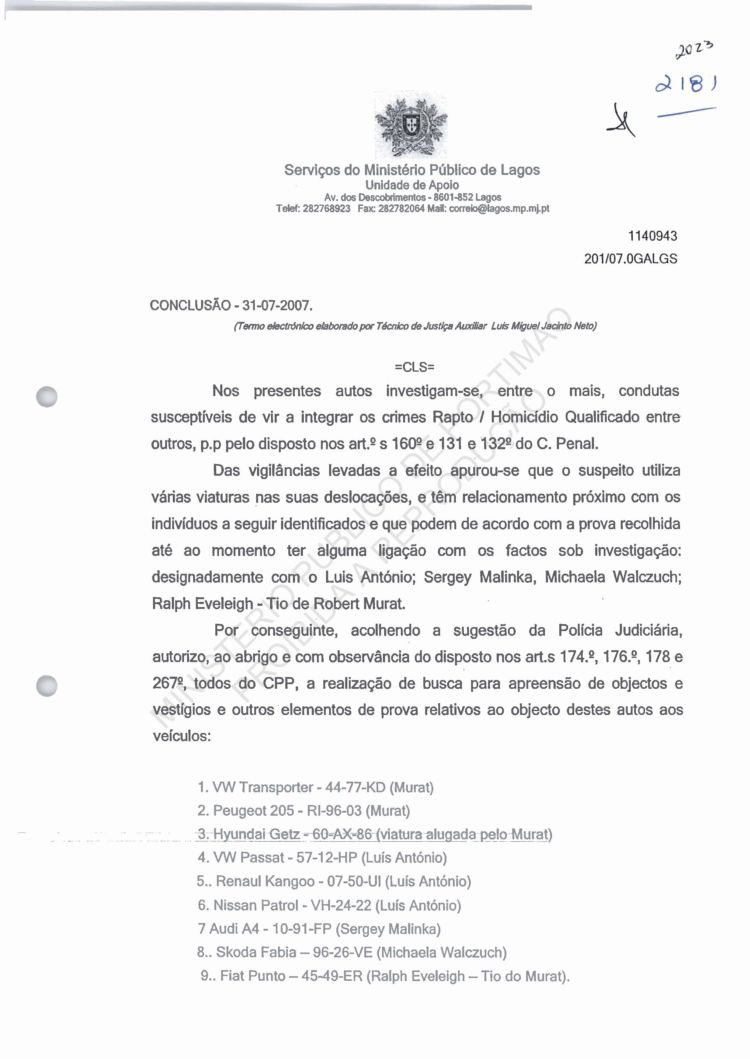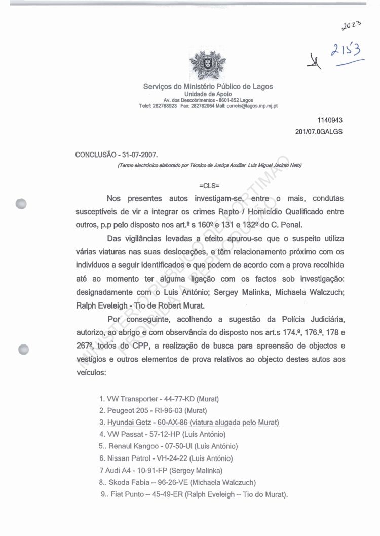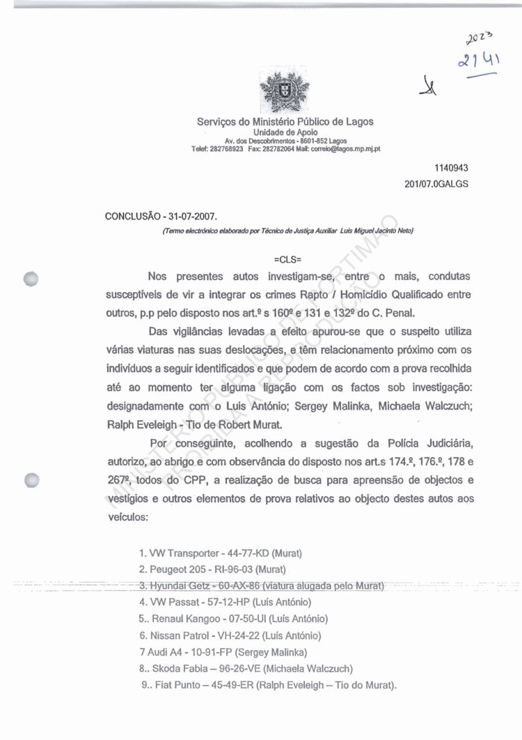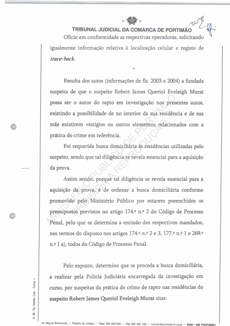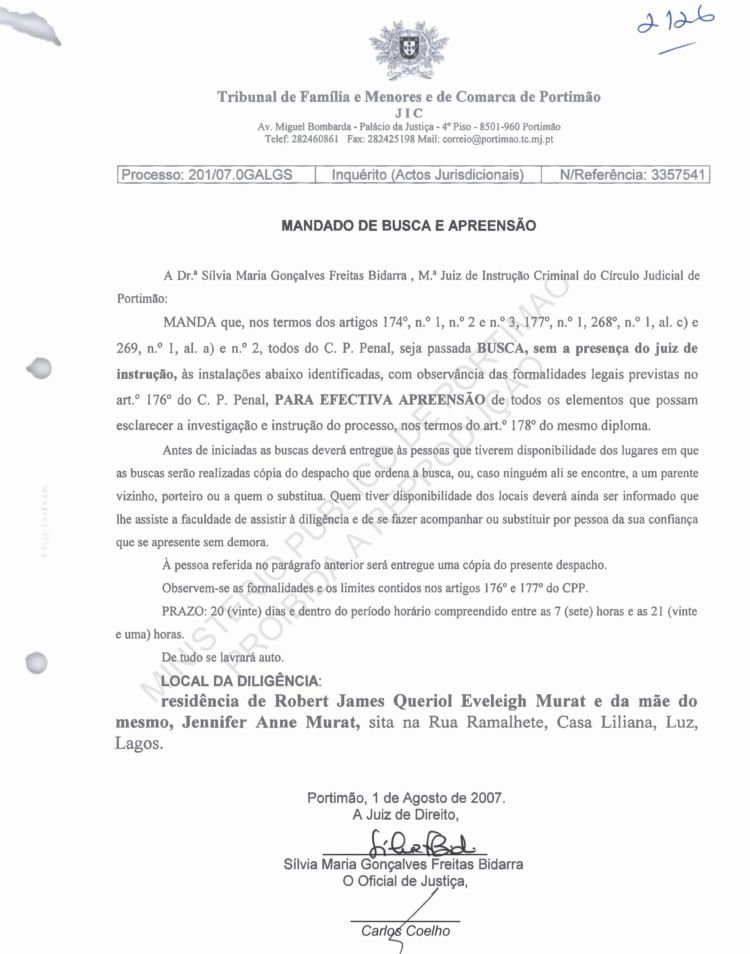 of arguido Robert Murat