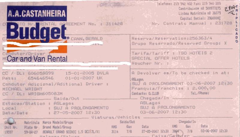 OFFICIAL INQUIRY FILES and DOCUMENTSCAR RENTAL CONTRACTS