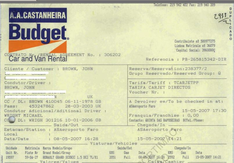 This information belongs to the Ministério Público in Portimão, Portugal.It was released to the public on 4 August 2008 in accordance with Portuguese Law
