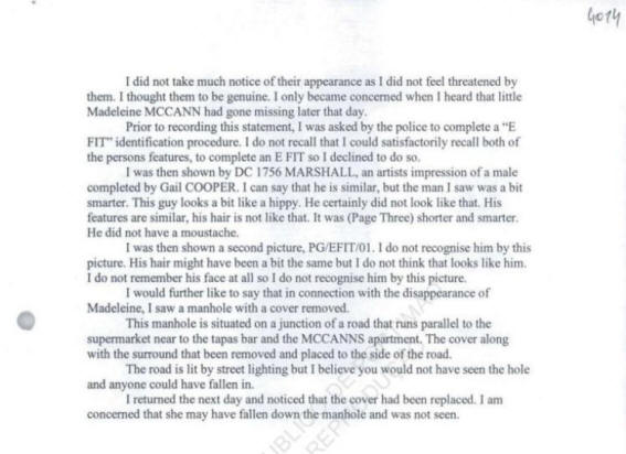 connection with the disappearance of Madeleine, I saw a manhole
