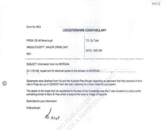Madeleine McCann had gone missing later that day.