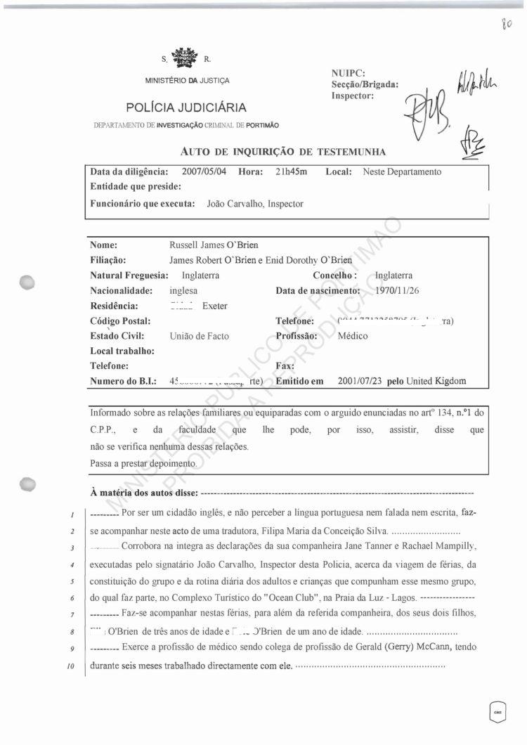 Russell O'Brien's Statement