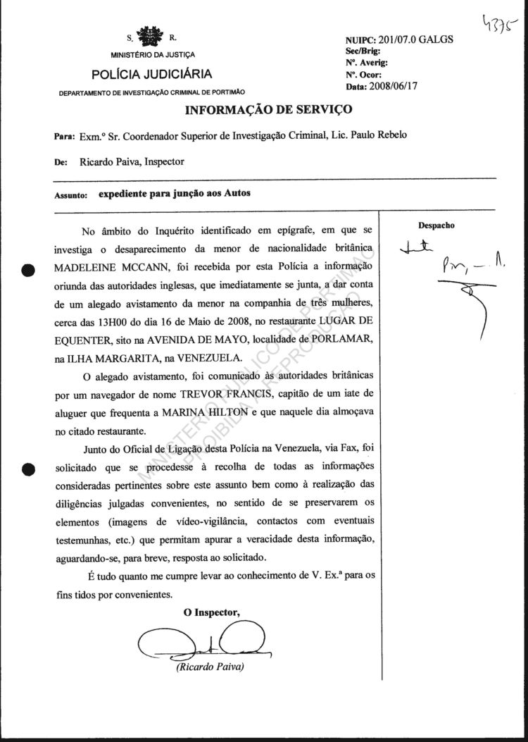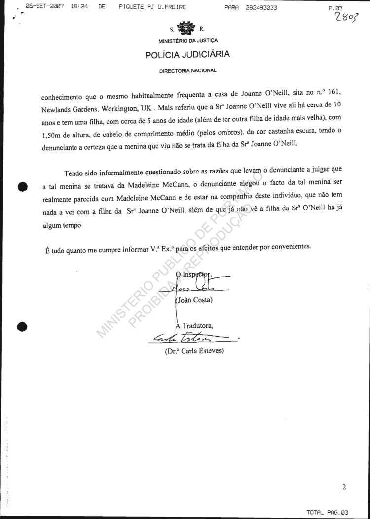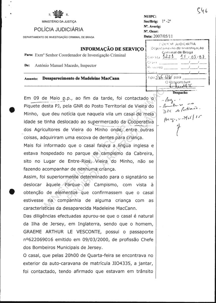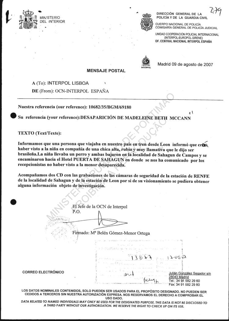 Your reference: Disappearance of Madeleine Beth