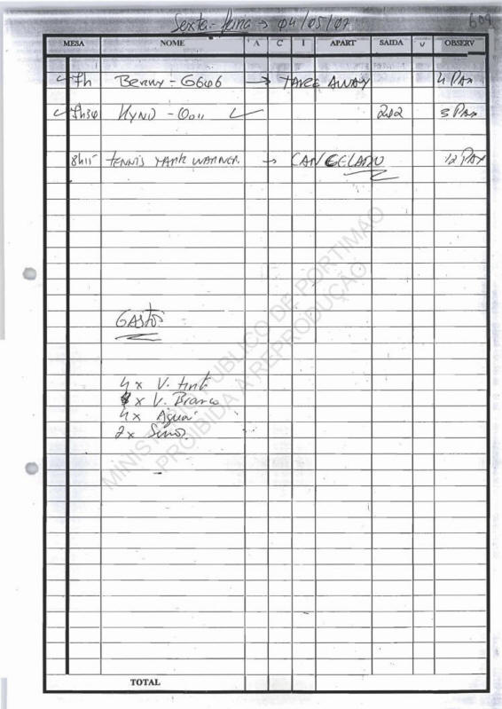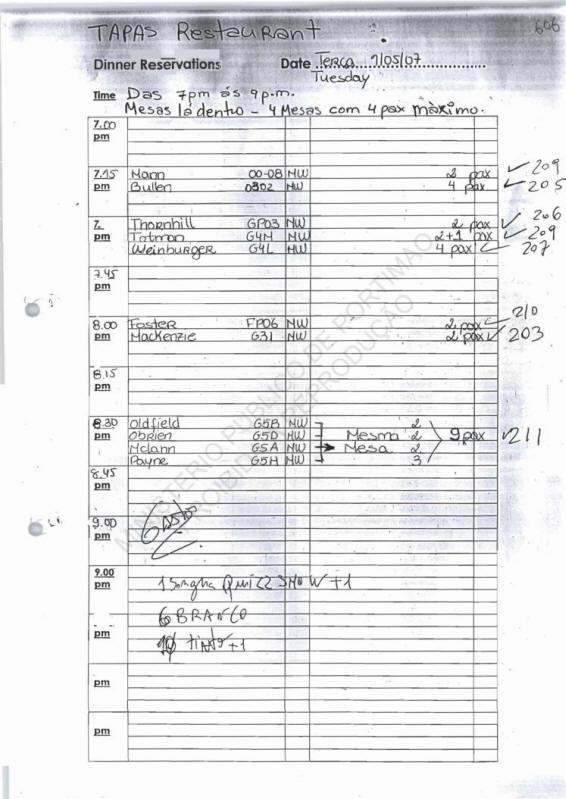 OC Check-in lists used by Tapas restaurant