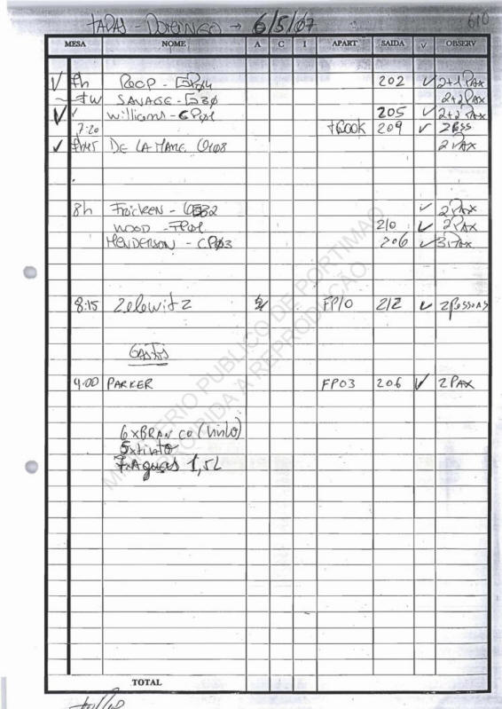 615 to 638 OC Check-in lists used by Tapas