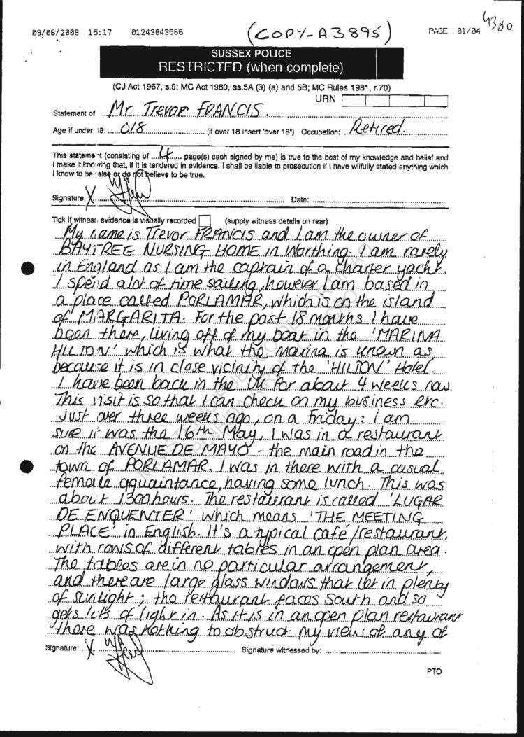 detailed 4 page statement from Trevor Francis, the owner.