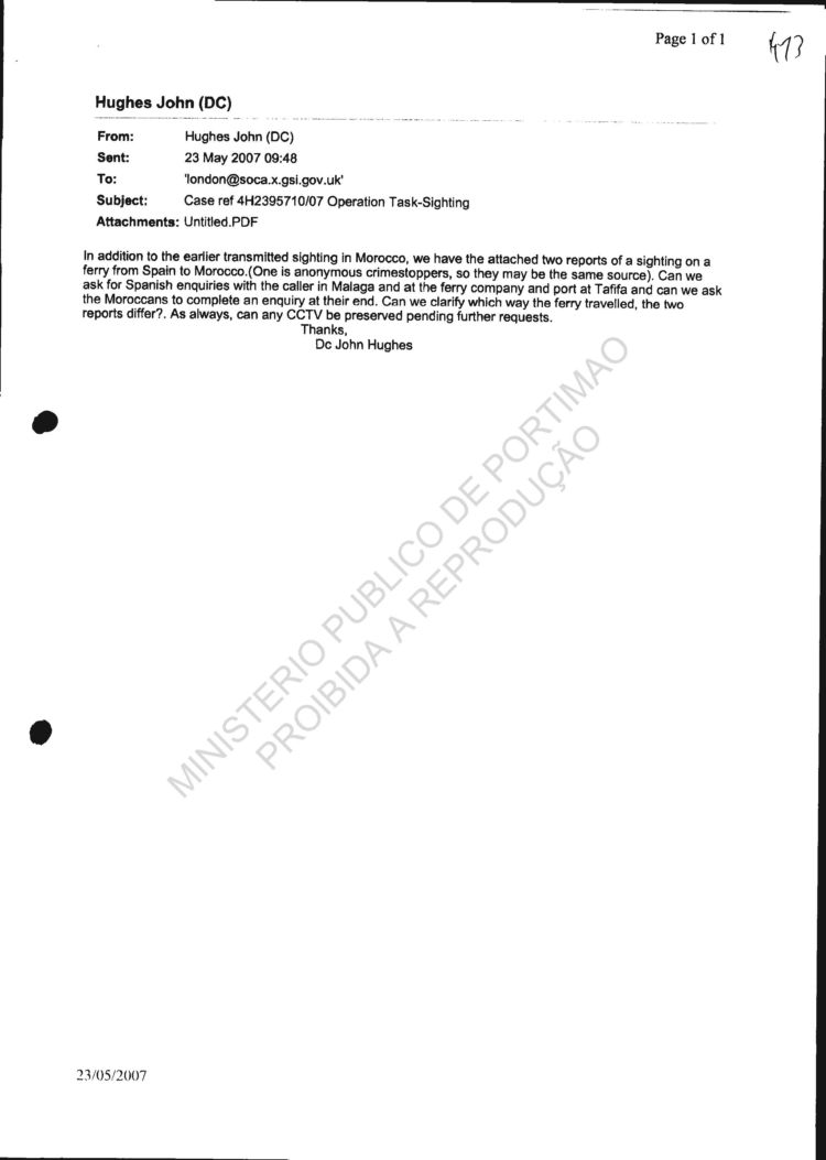 413 Email from DC Hughes re Spain to Morocco CCTV sighting