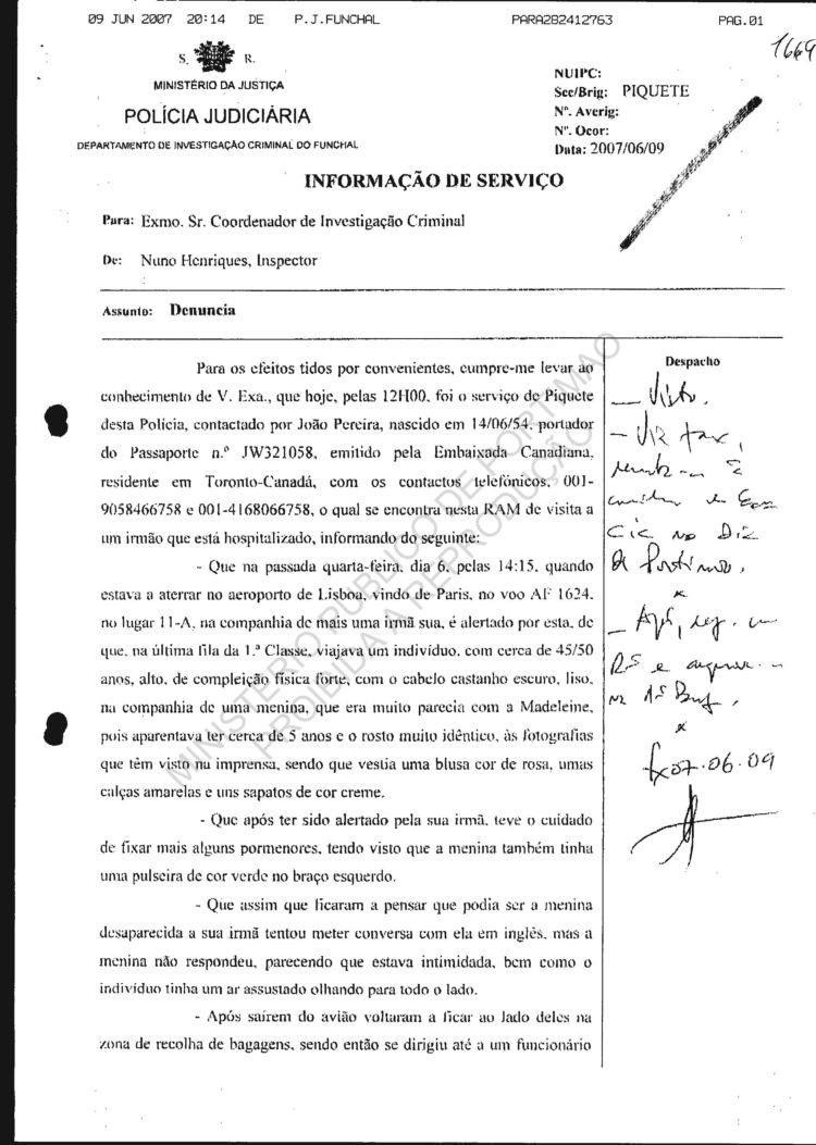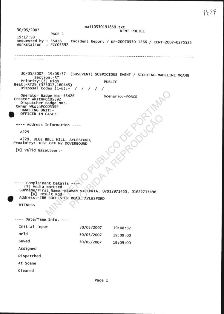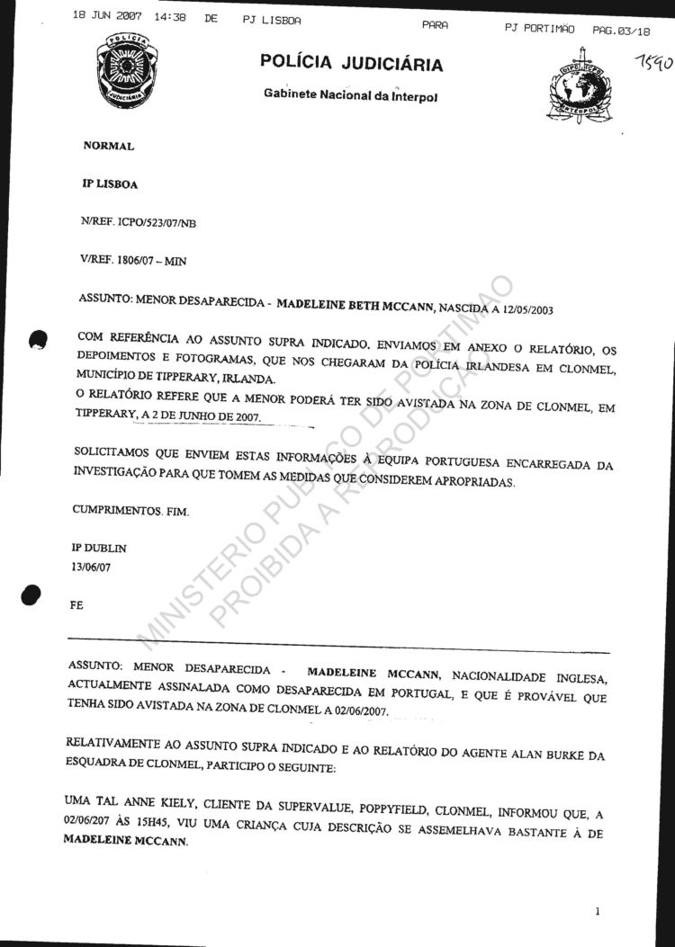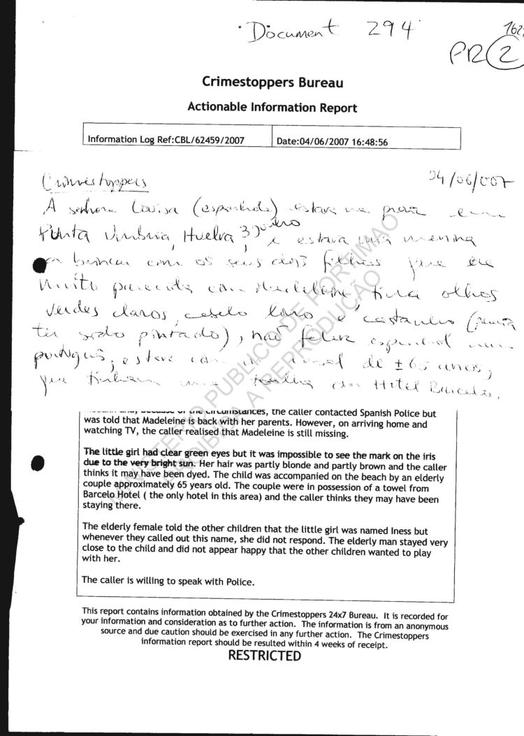 statement re sighting in Huelva |