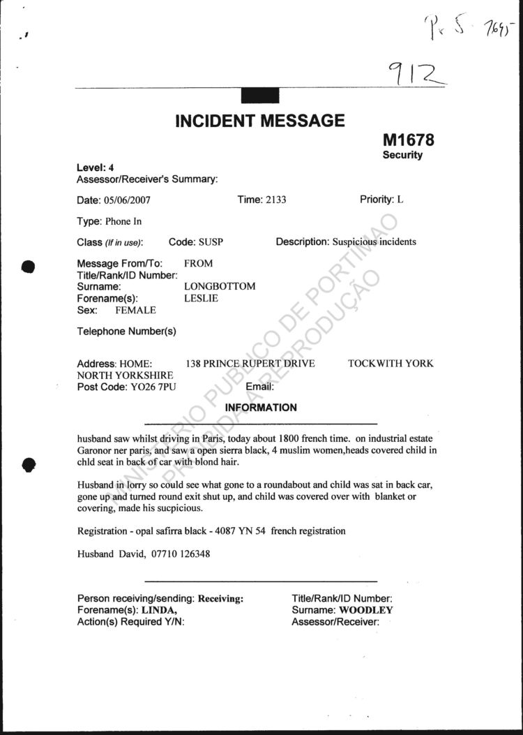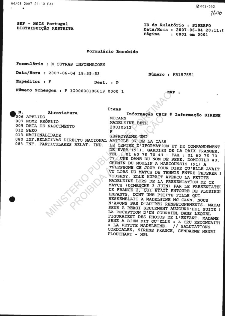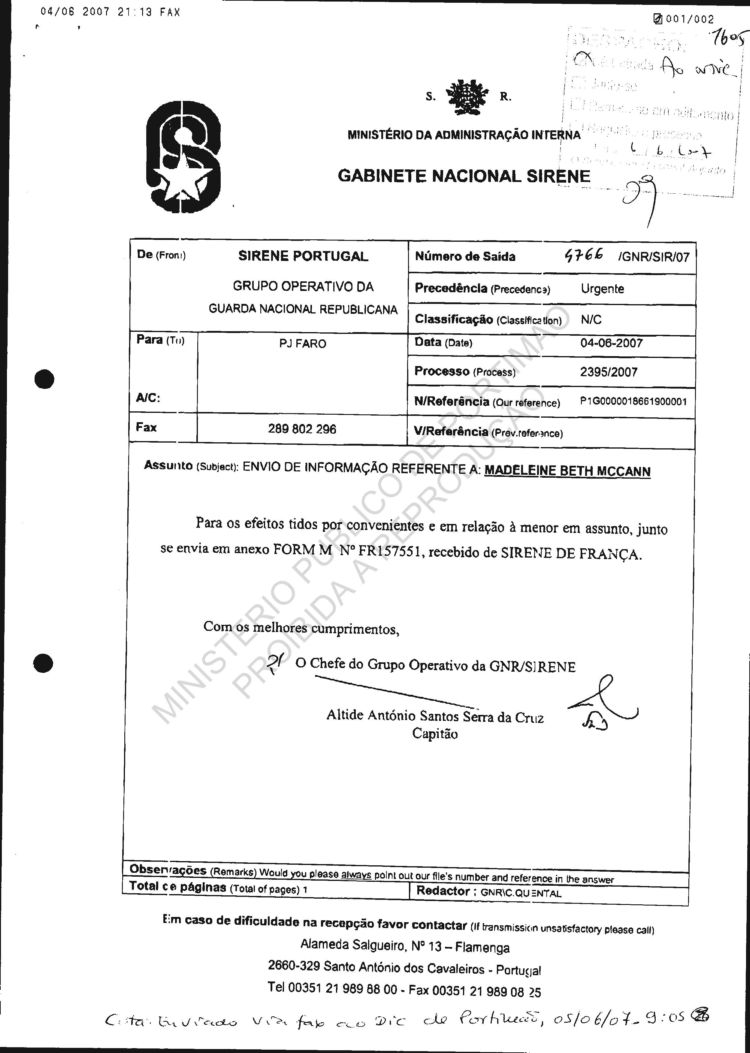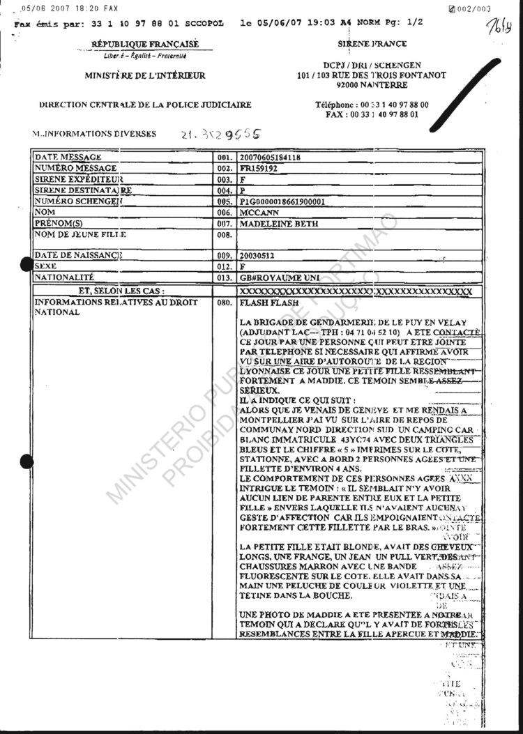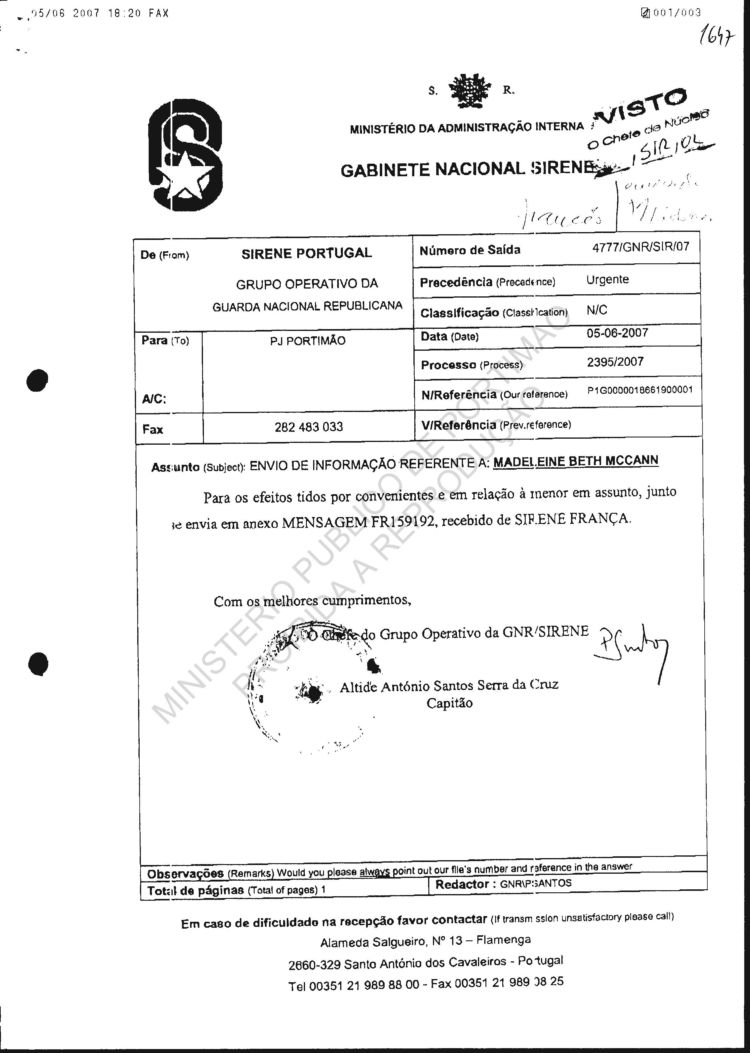 received from SIRENE |
