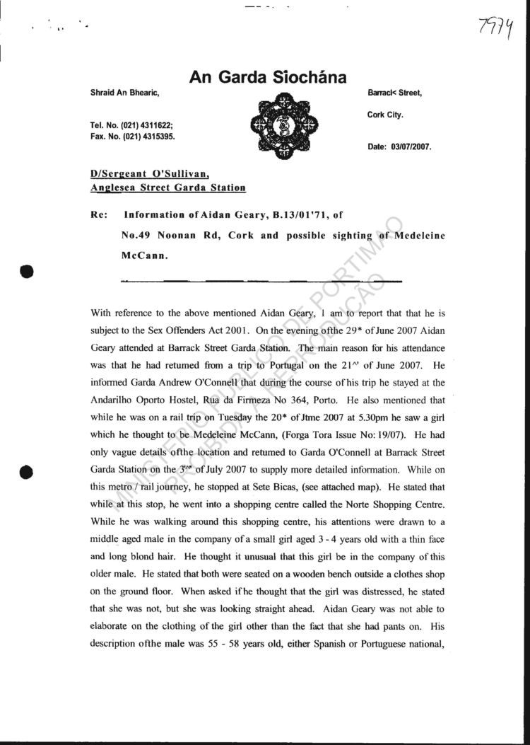 statement re sighting in