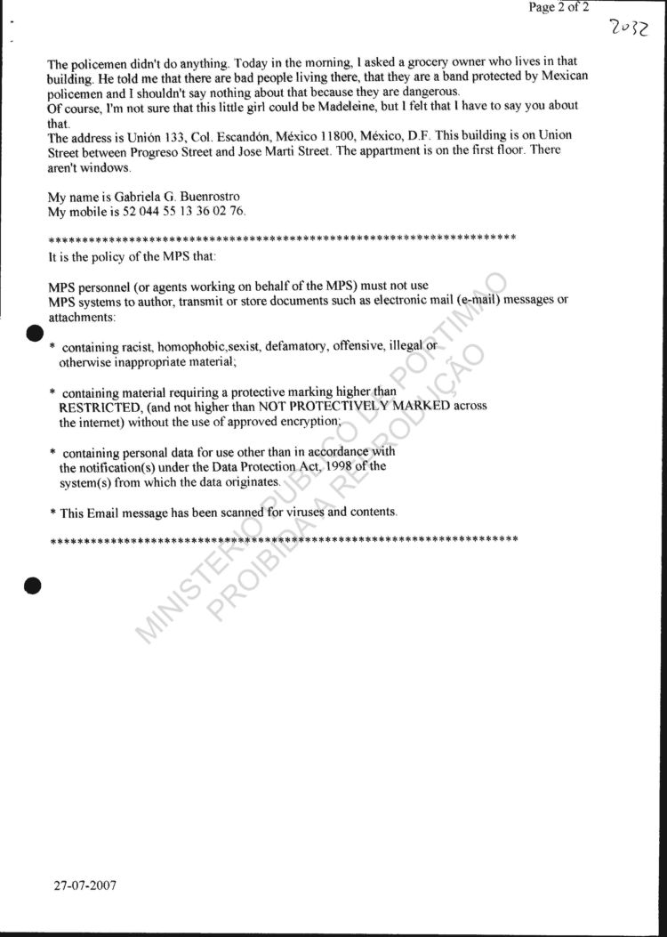 information re Madeleine's