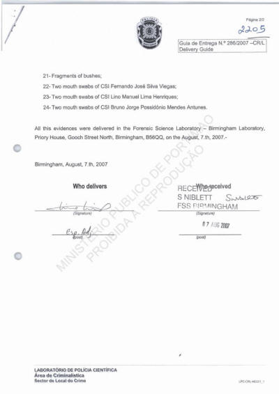 22- Two mouth swabs from CSI Fernando Jose Silva Viegas;