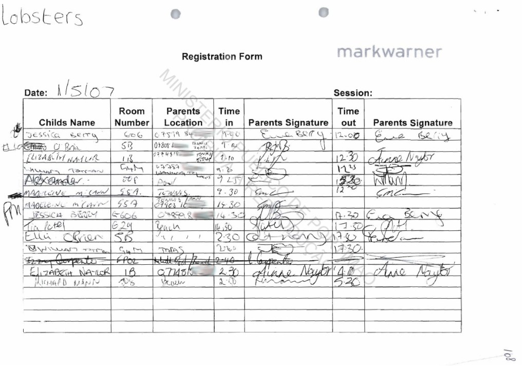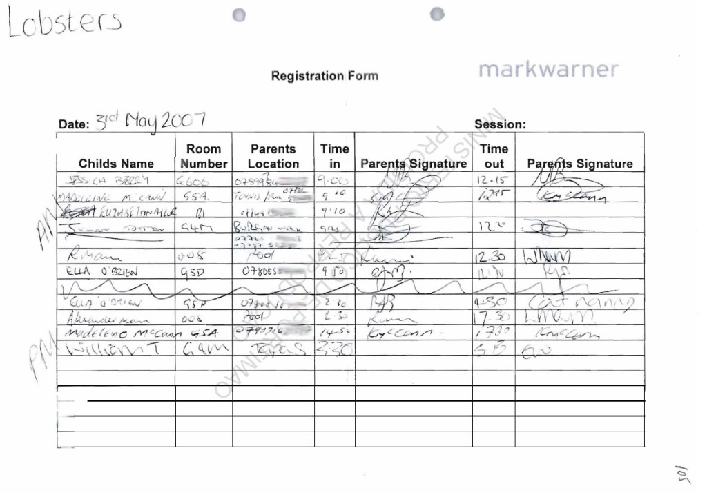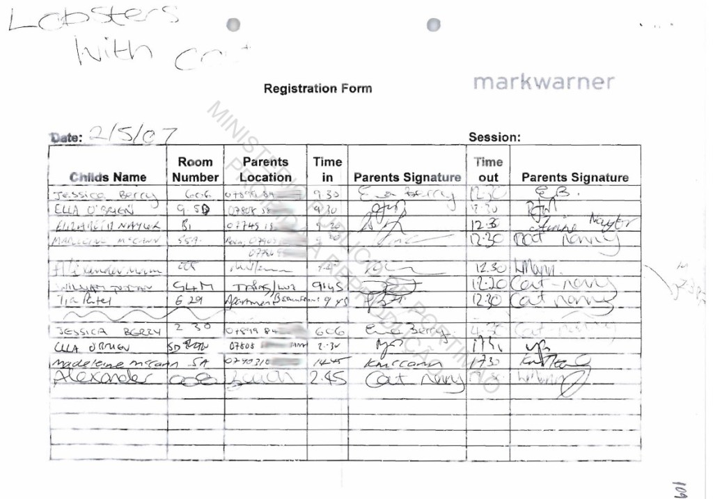 ROUTINE she handed Madeleine over at 17.30. She looked