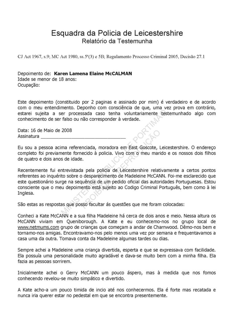 4 to 5-Witness statement of Karen Lamena Elaine McCalman (family friend) 2008.05.14