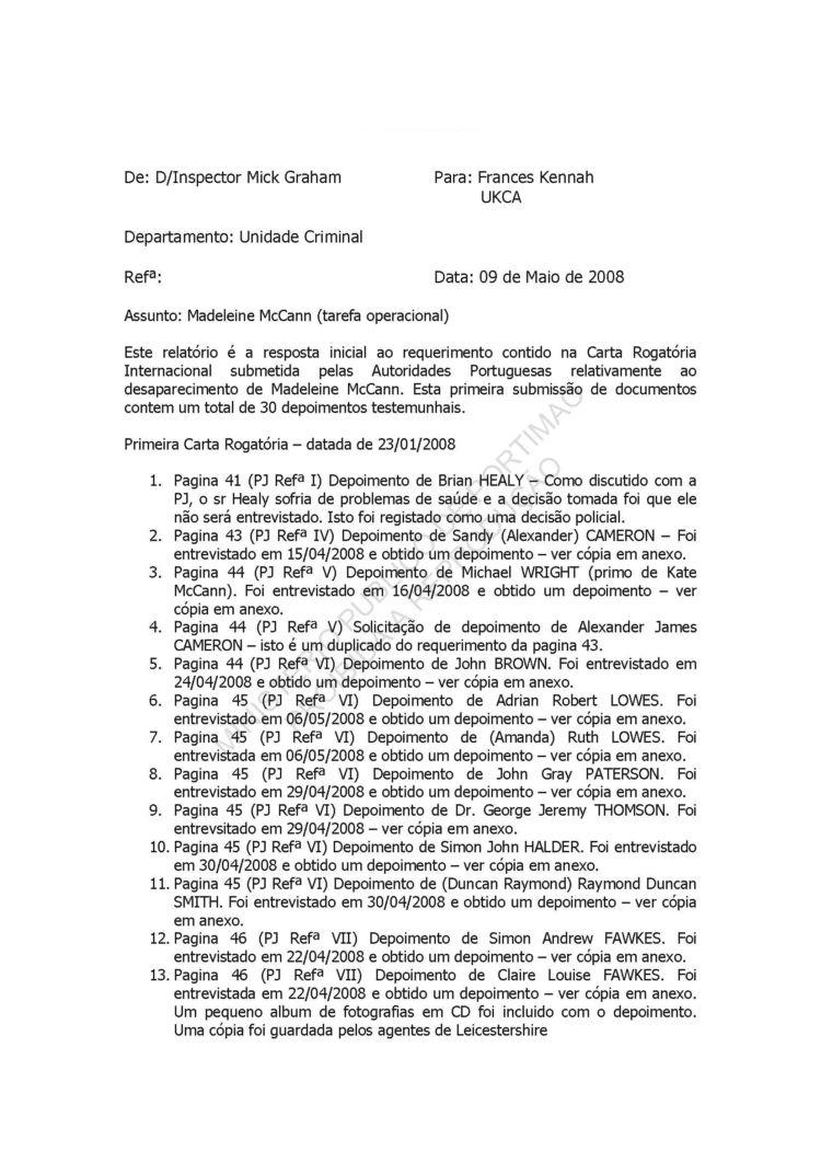 This information belongs to the Ministério Público in Portimão, Portugal.It was released to the public on 4 August 2008 in accordance with Portuguese Law