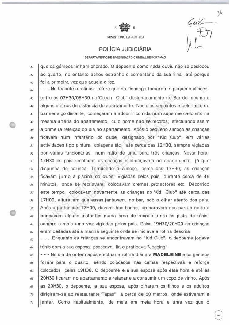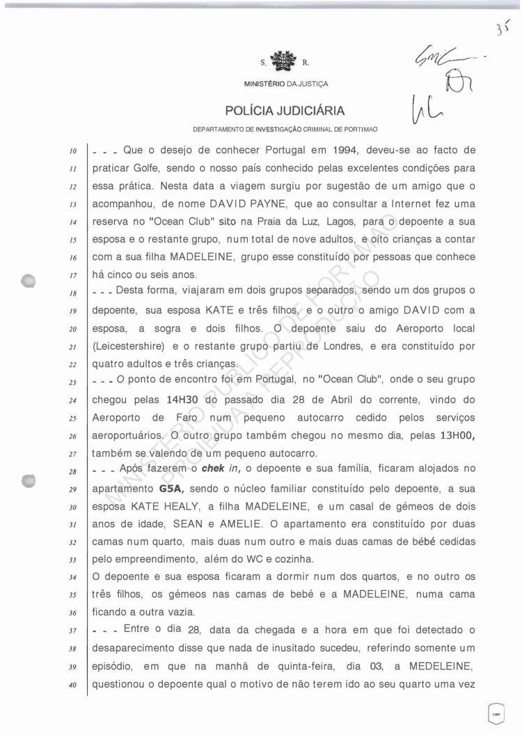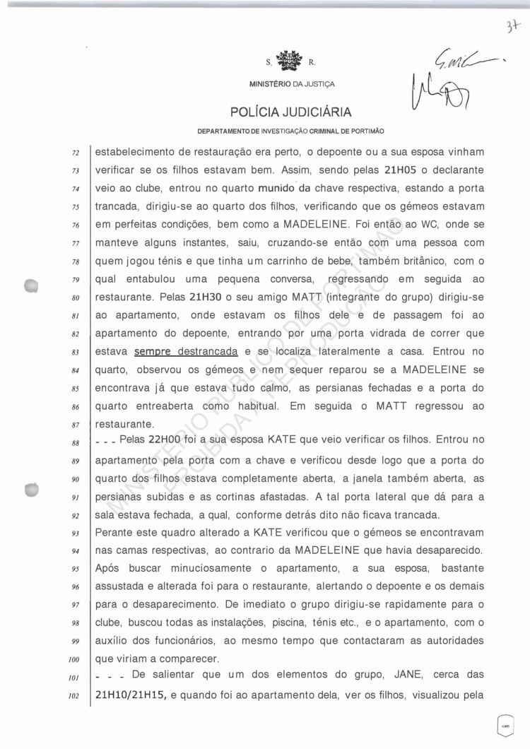 disappearance was discovered, he says that nothing unusual