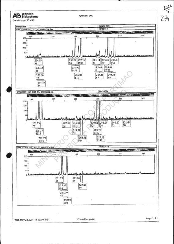 202 to 204 Report from Ministry of Justice re analysis of vestiges with haplotype info
