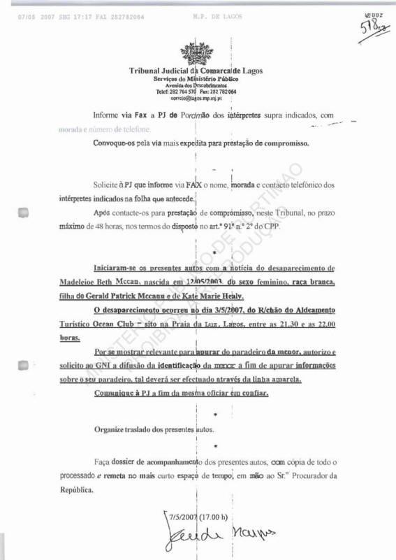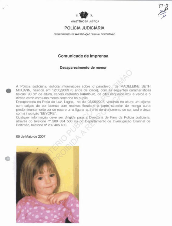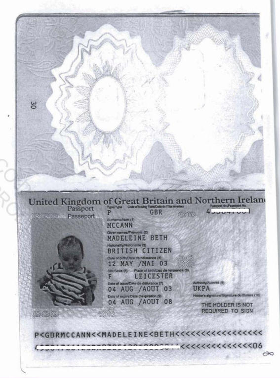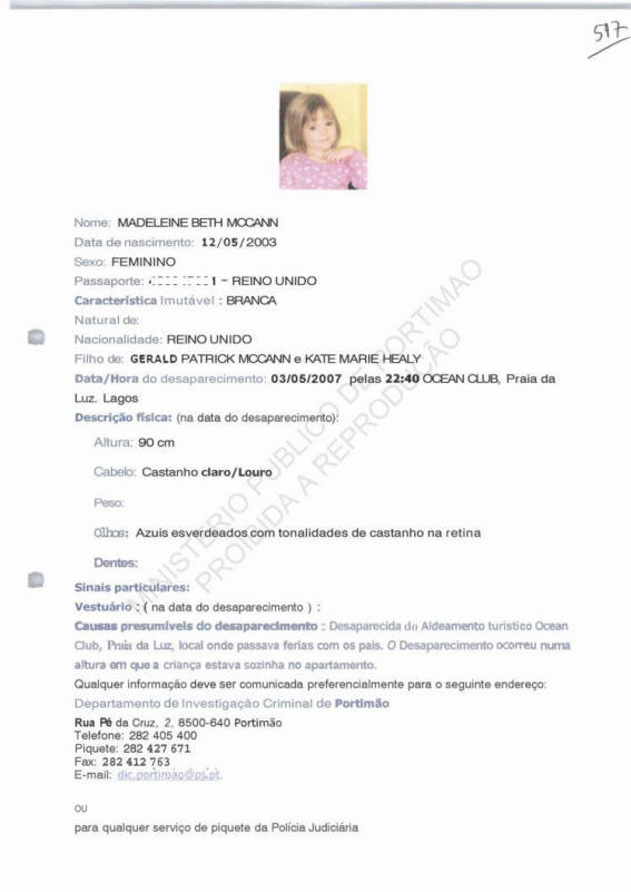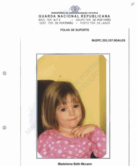 of Madeleine McCann, born on 12-05-2003, female sex, white