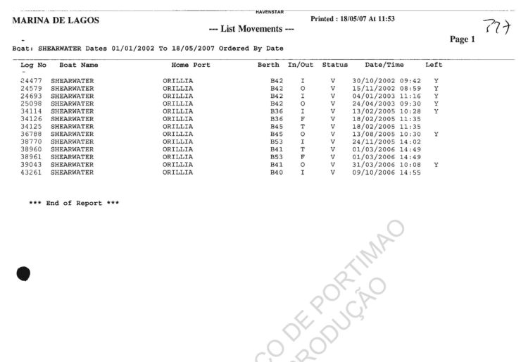 information re Lagos port