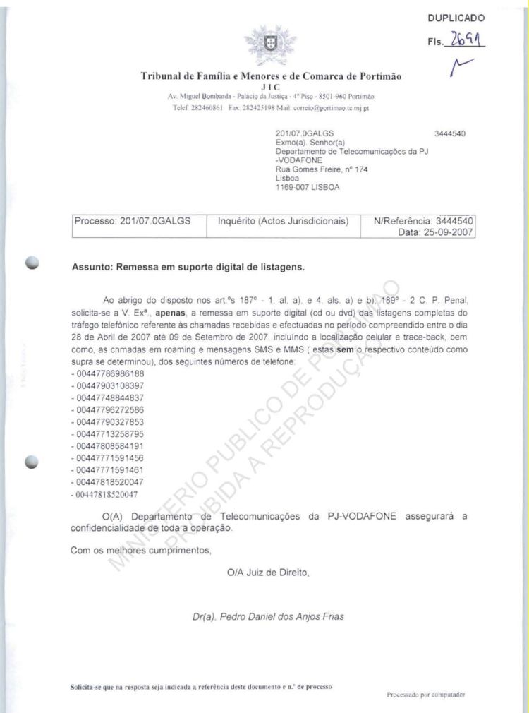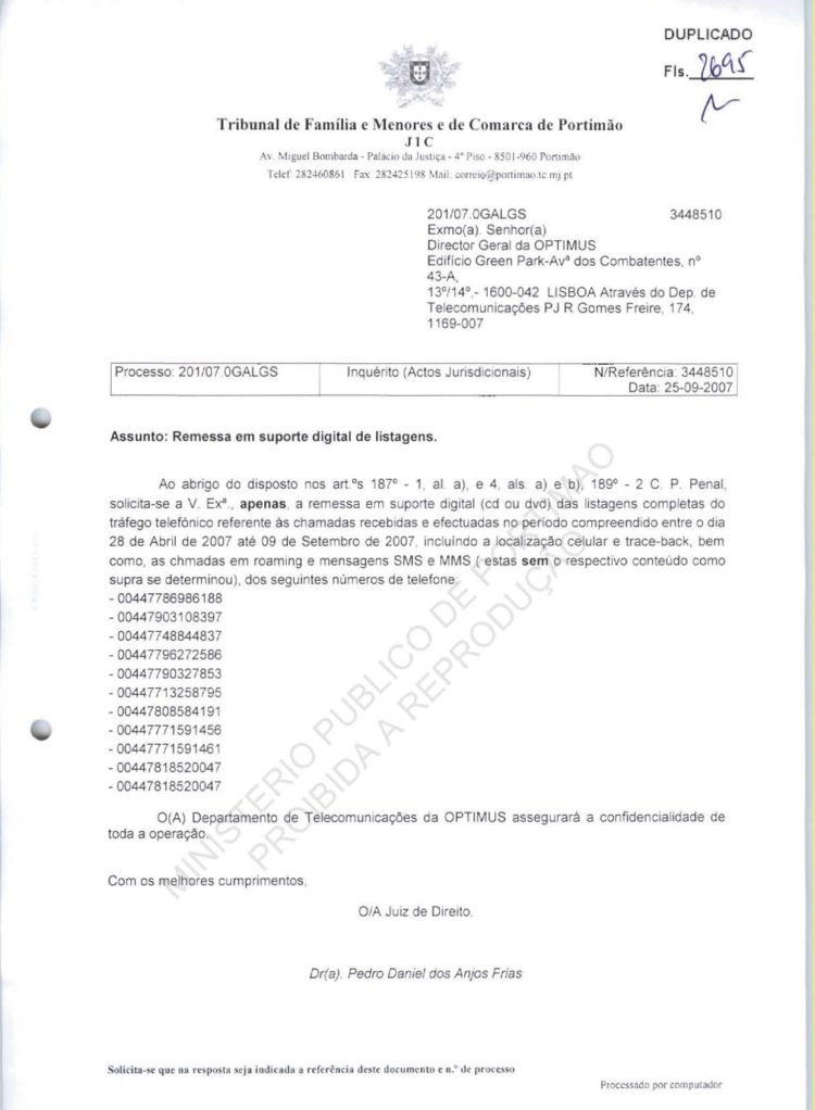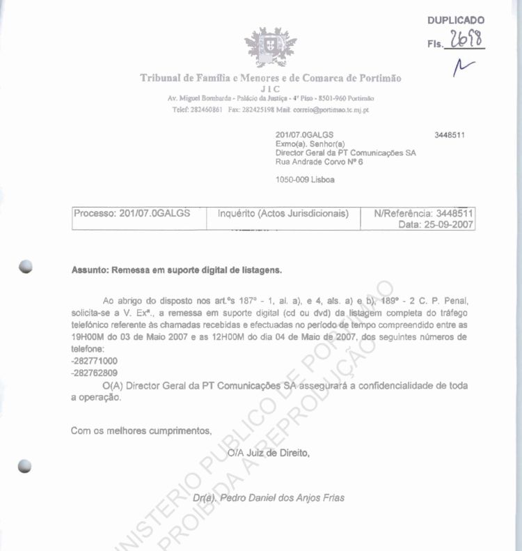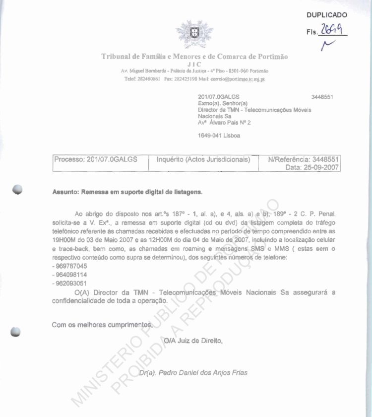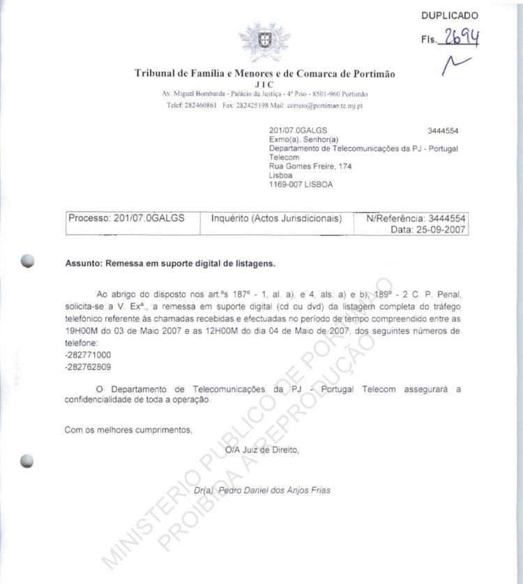 This information belongs to the Ministério Público in
