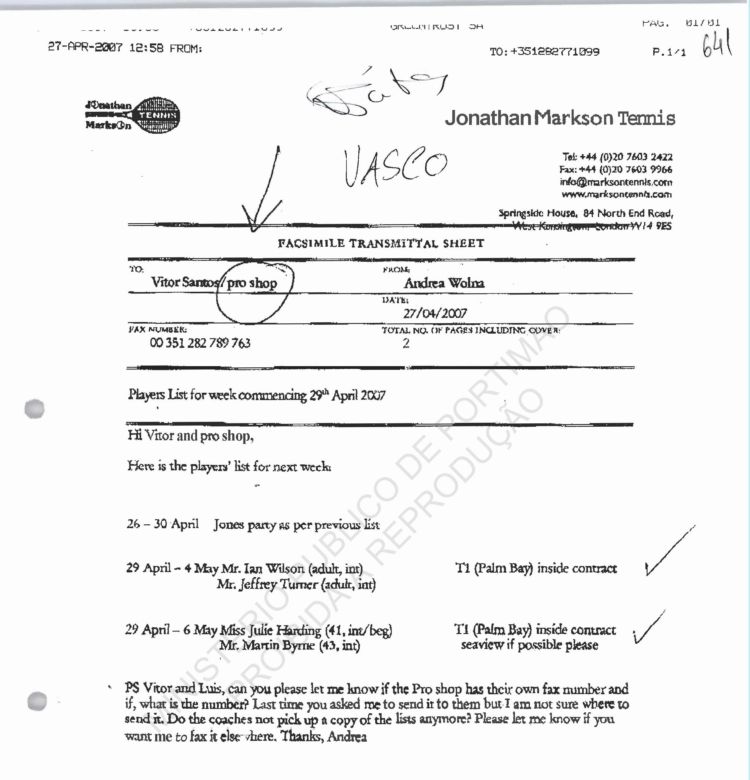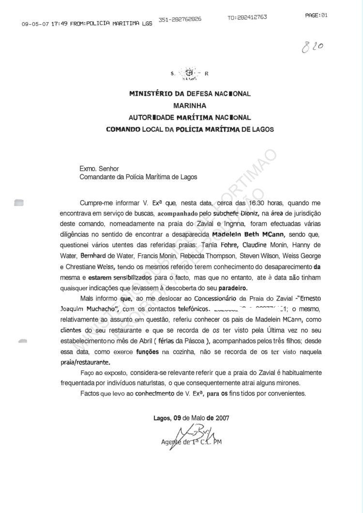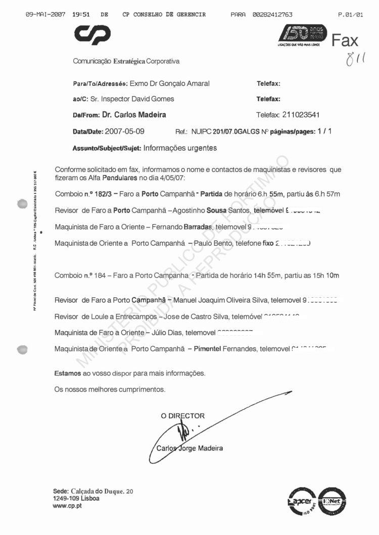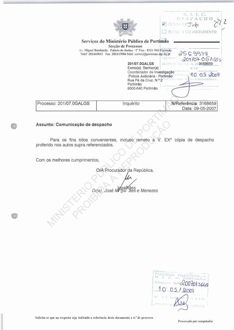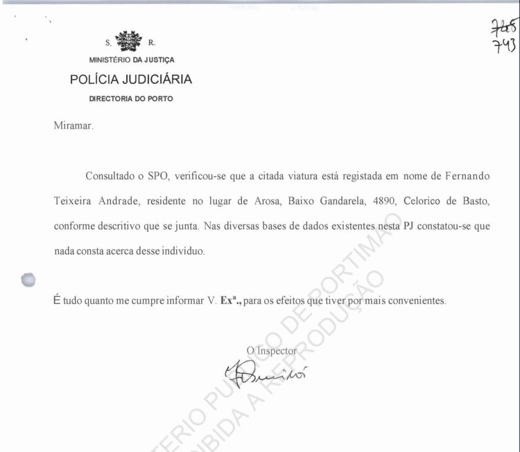 Costa, PJ Porto, regarding information on